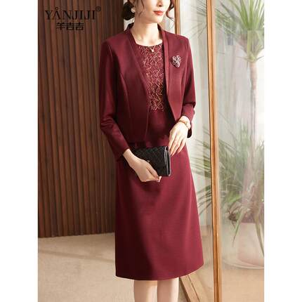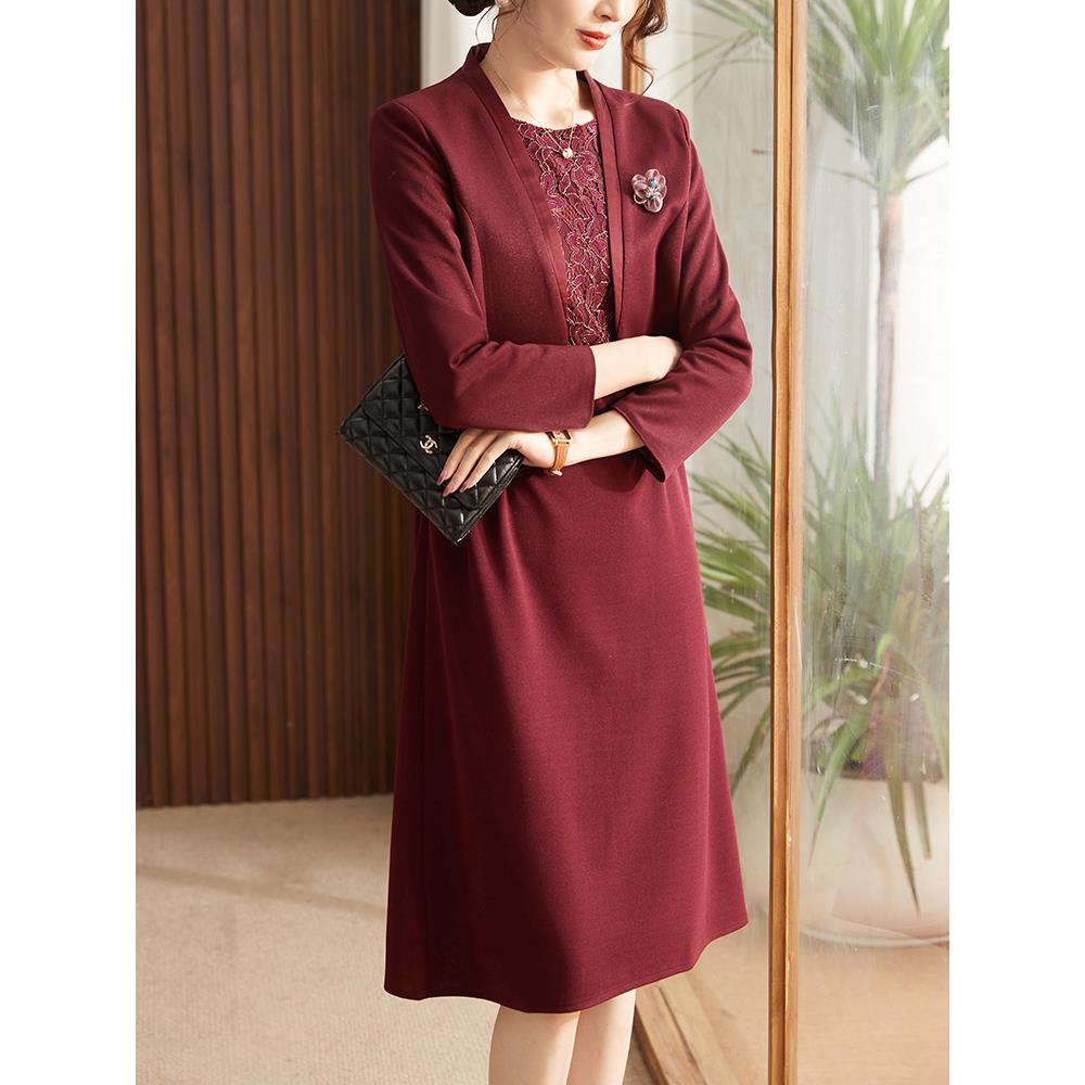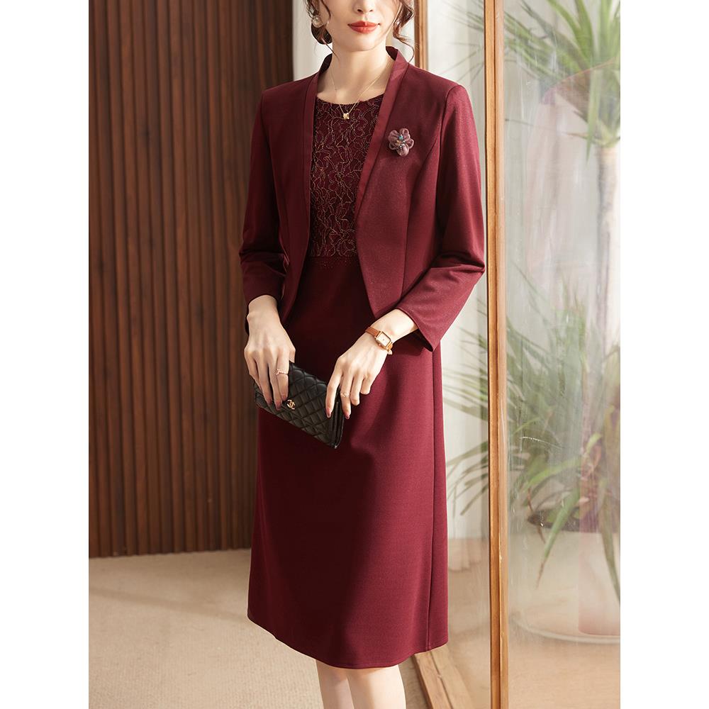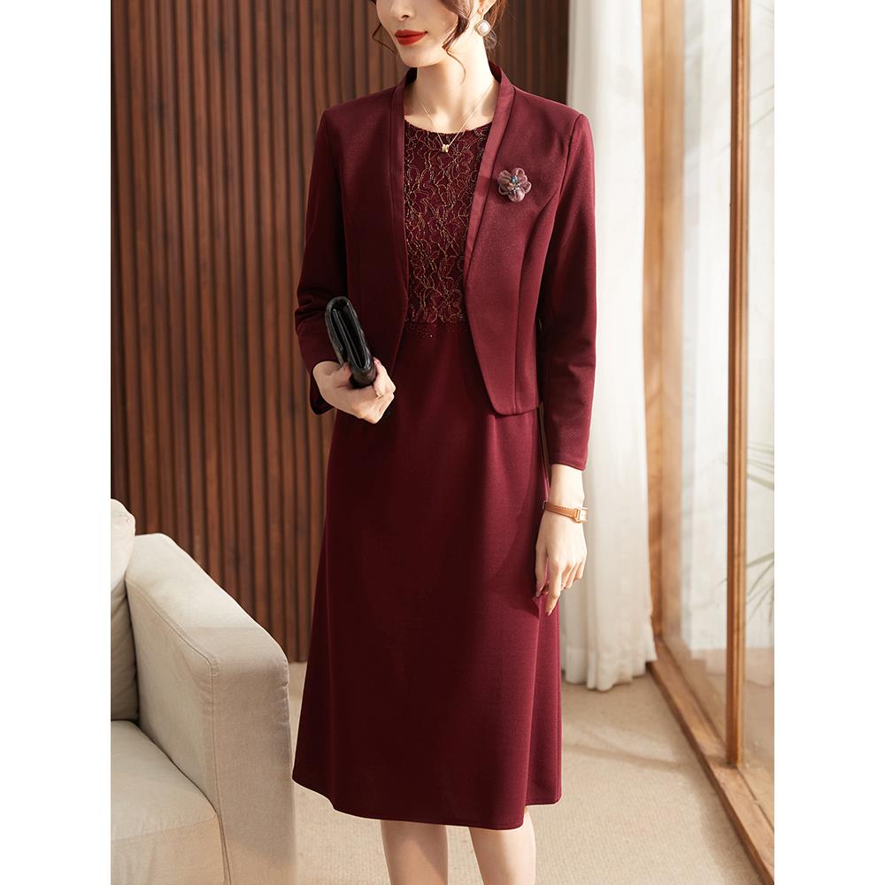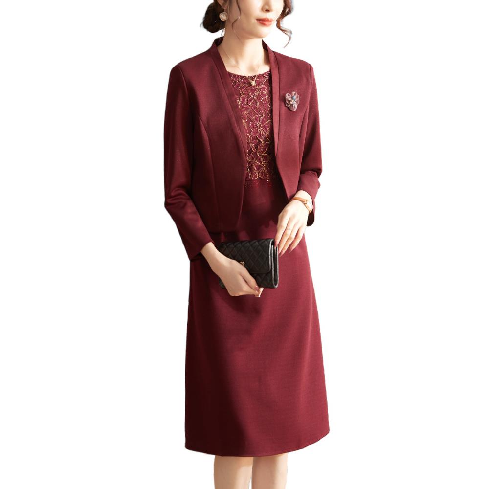 喜婆婆婚宴装高贵两件套装女妈妈参加结婚礼服连衣裙喜庆长袖外套