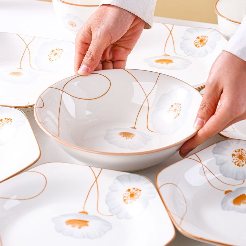 北欧风盘子菜盘家用2023新款创意个性米饭碗六角拼盘陶瓷餐具套装