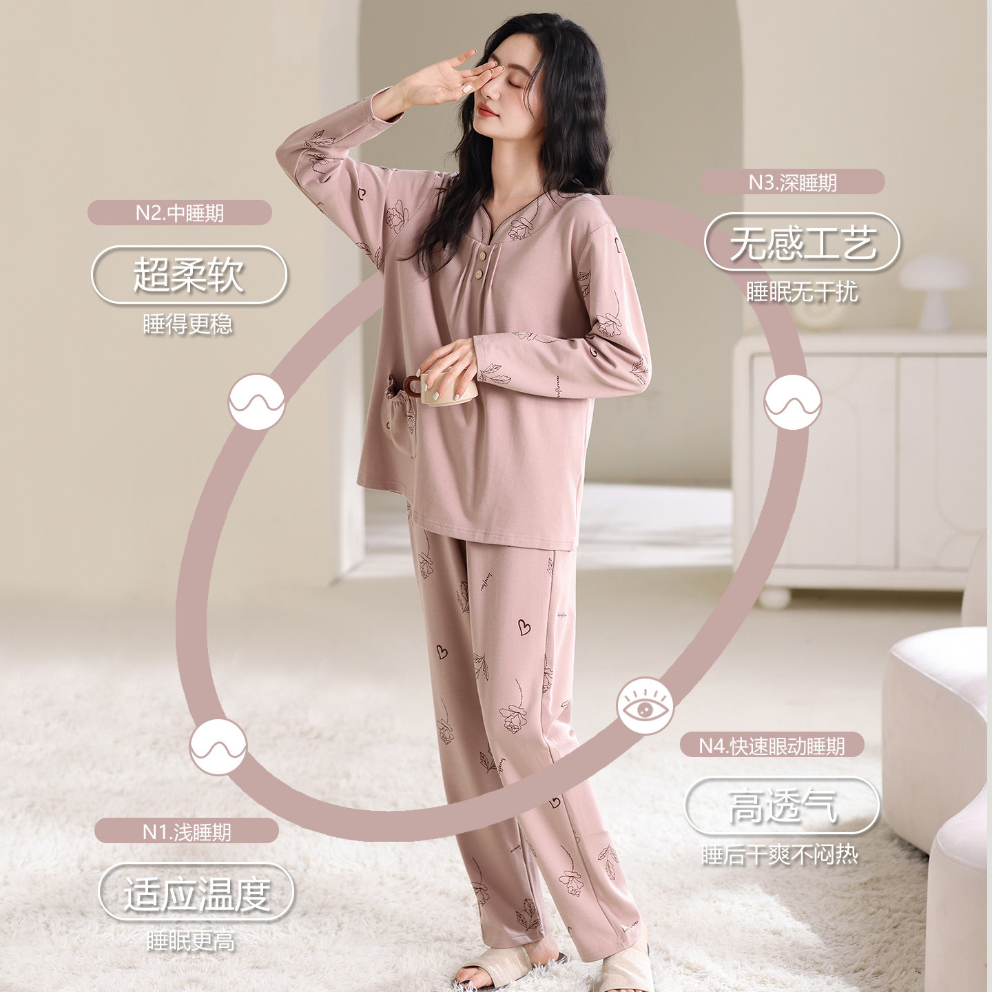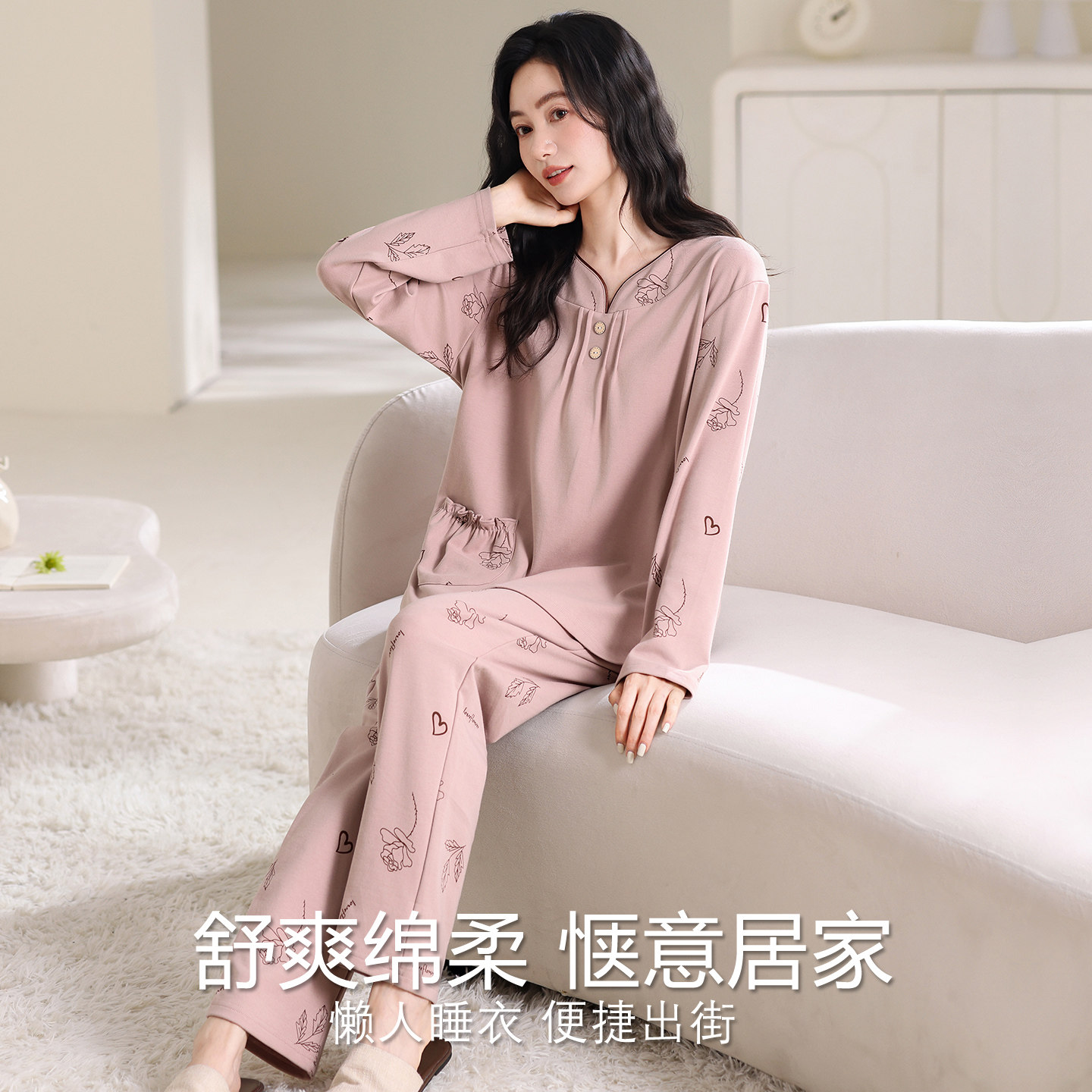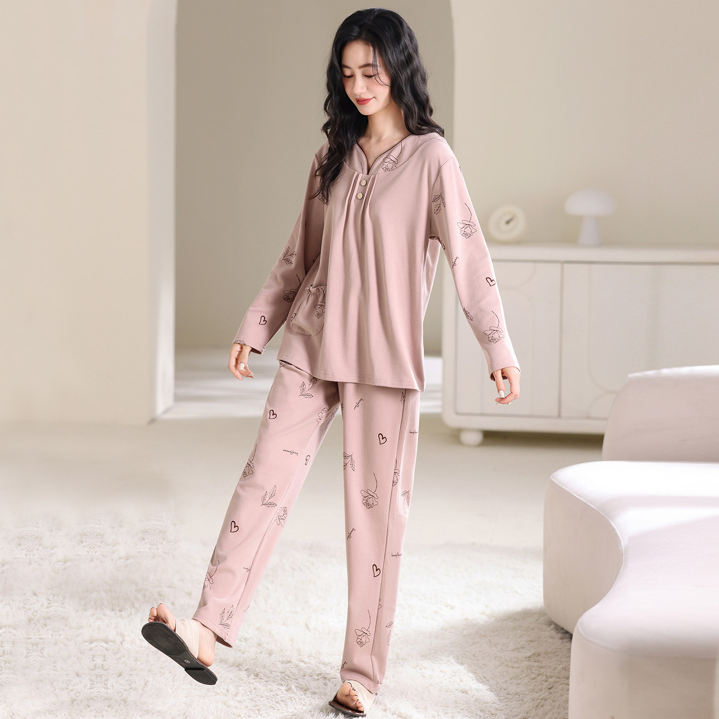 芬腾可安睡衣女款2026新款秋春季纯棉长袖女士大码家居服套装冬天