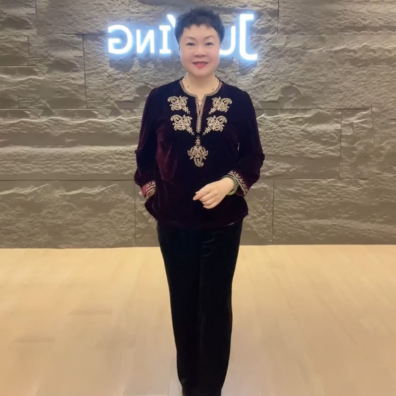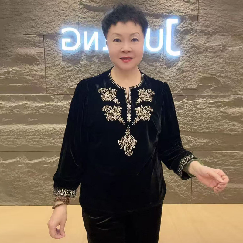高品质!气质妈妈丝绒绣花上衣女