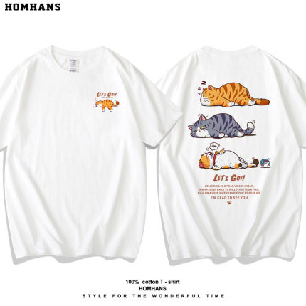趣味卡通猫咪短袖潮流夏装T恤
