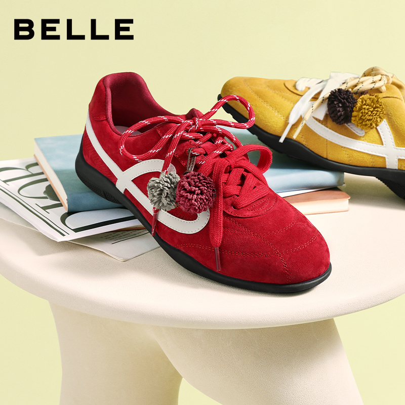 百丽时尚双鞋带撞色德训鞋女2025秋新薄底舒适运动休闲鞋WP015CM5