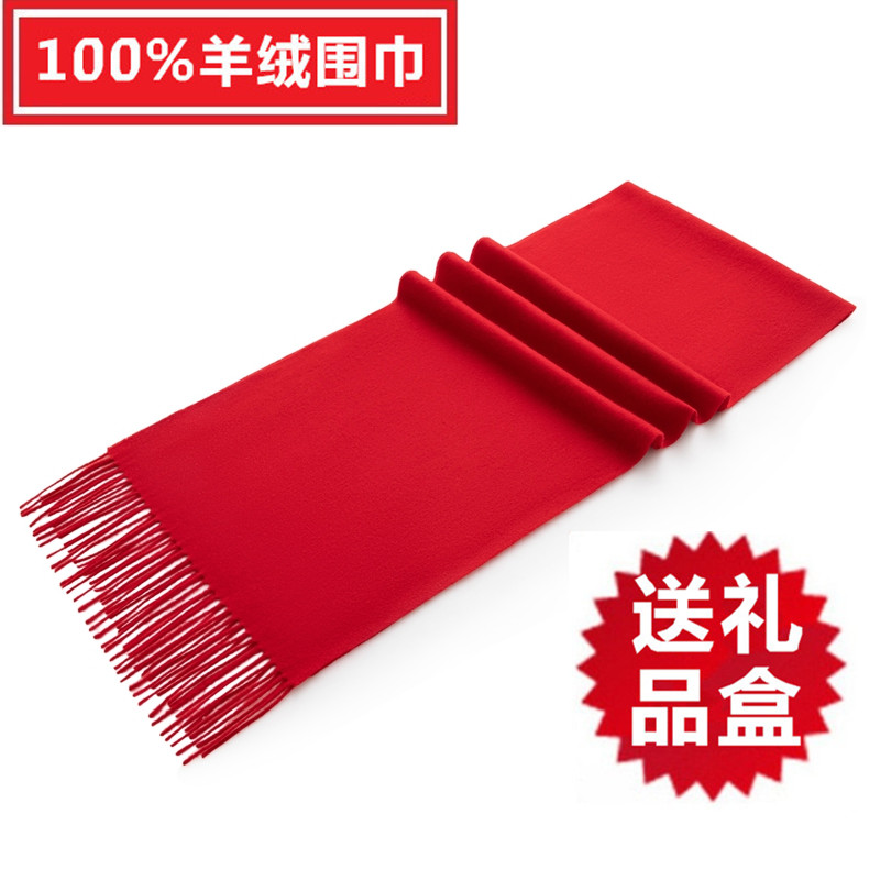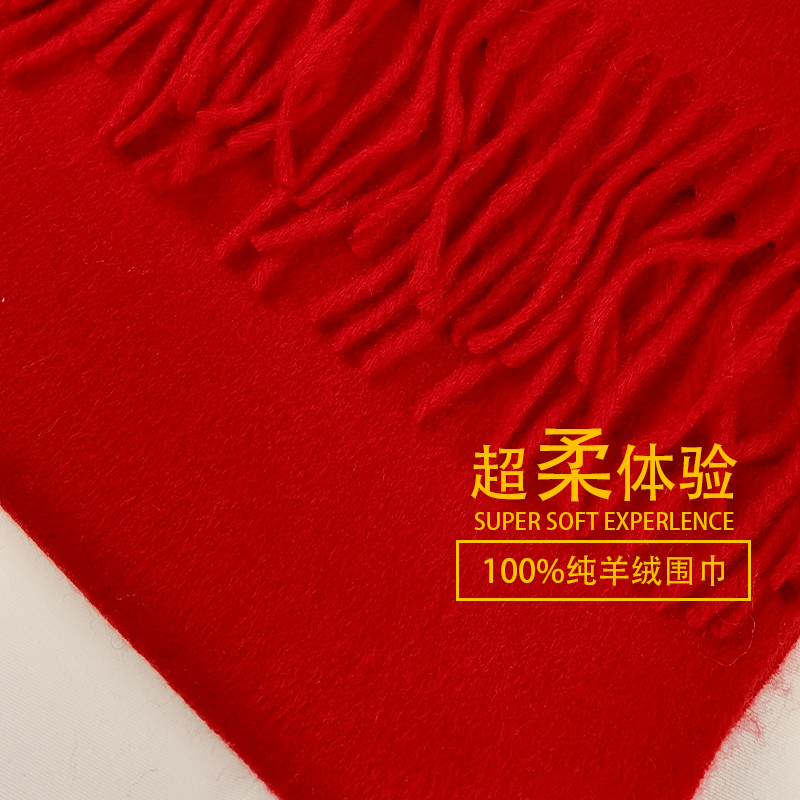 鄂尔多斯市大红纯羊绒围巾中国红纯羊绒围脖秋冬男女加厚保暖羊毛
