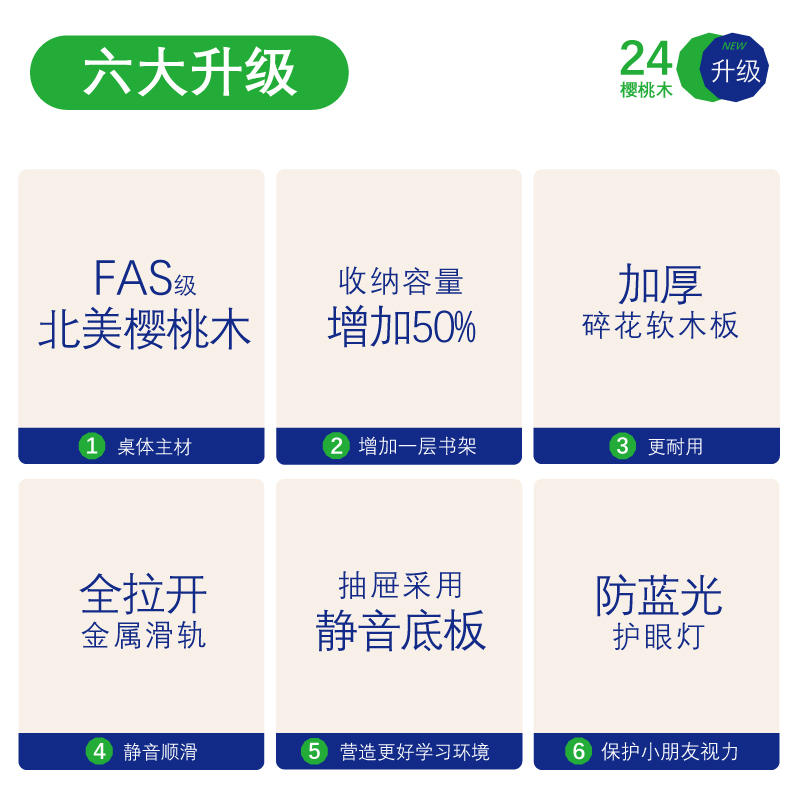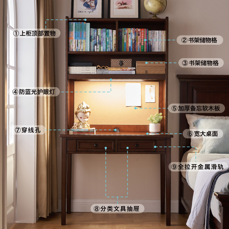和年美家美式全实木书桌书架一体组合儿童学习桌子经济型小电脑桌