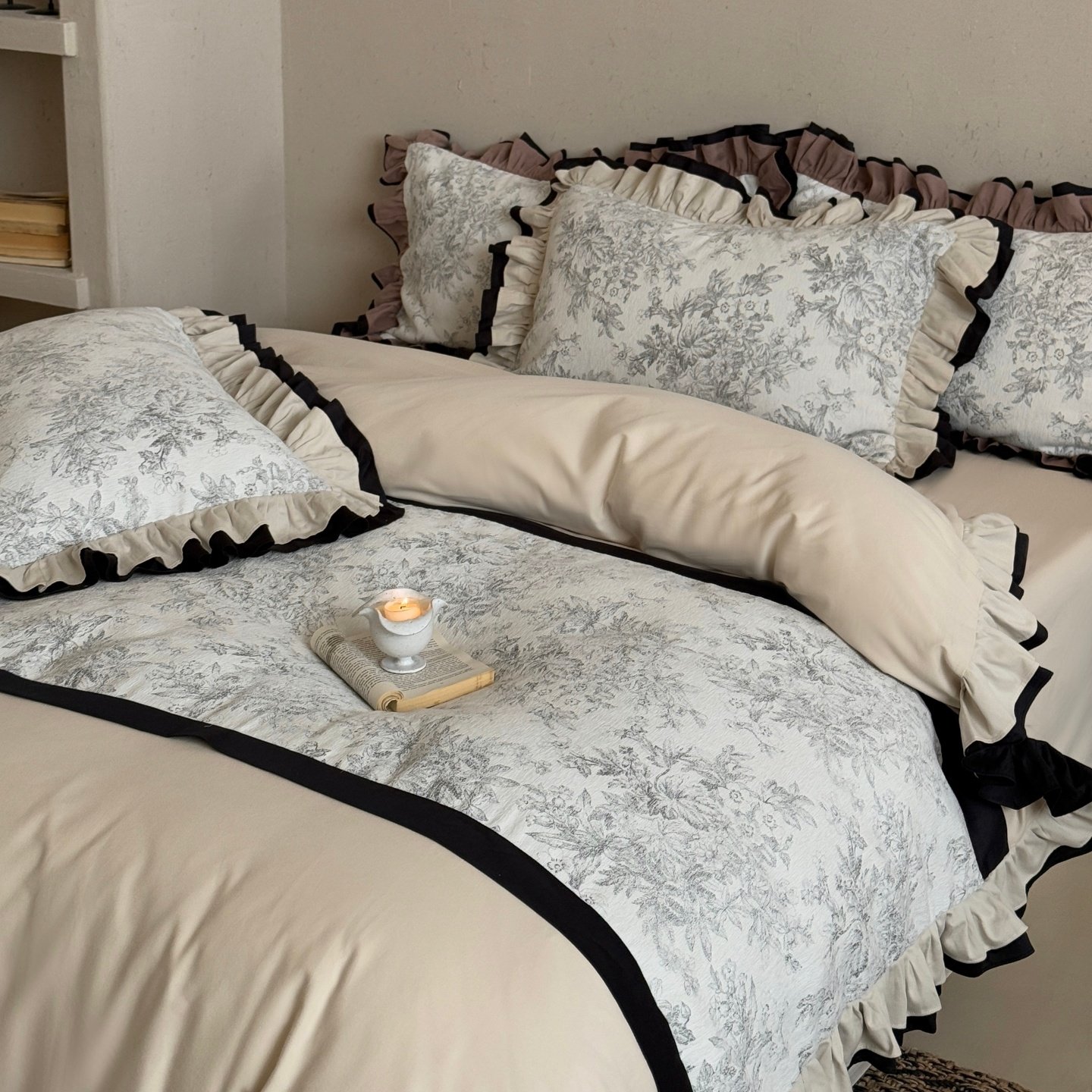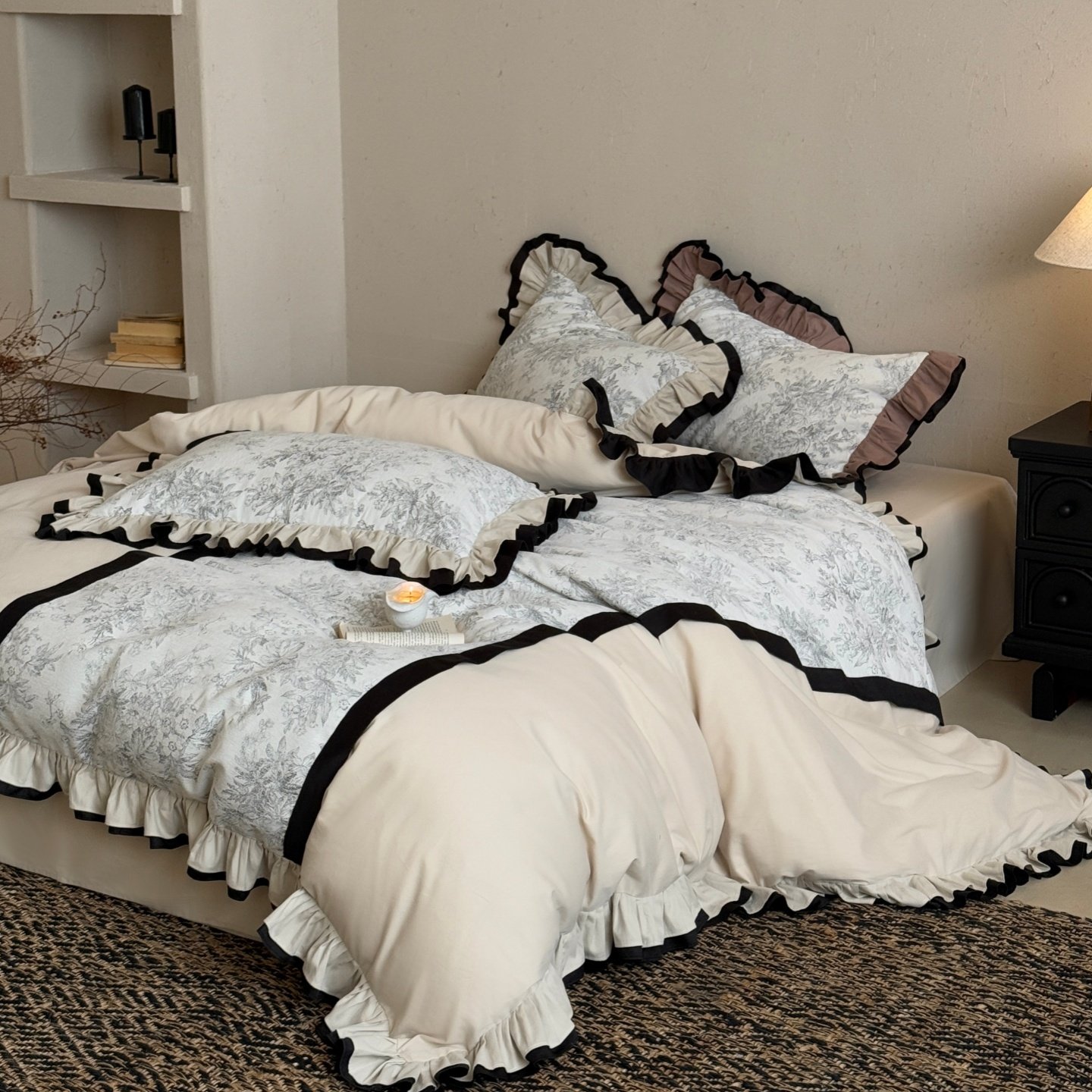 法式复古风全棉磨毛四件套加厚纯棉提花被套床单荷叶花边床上床品