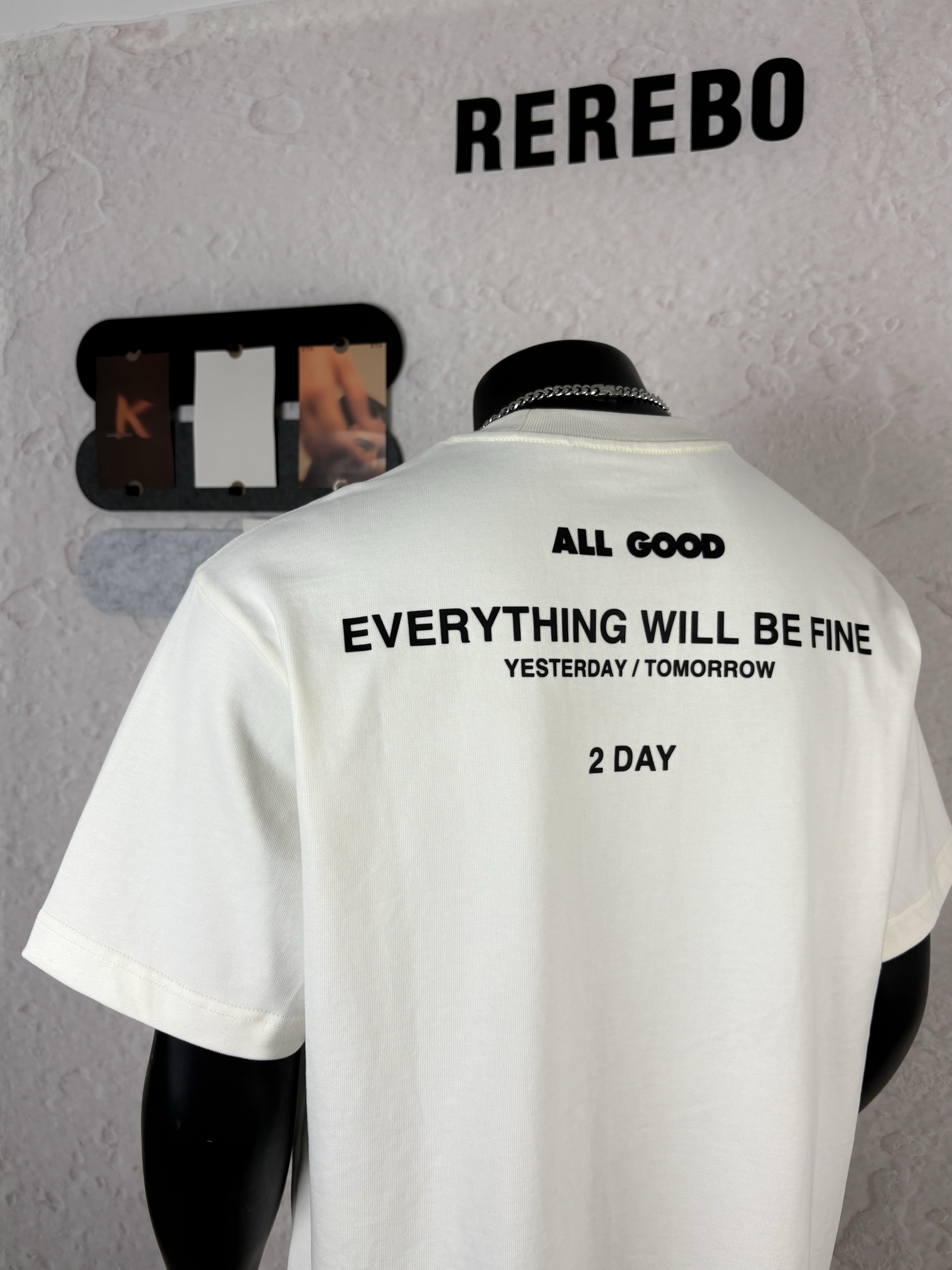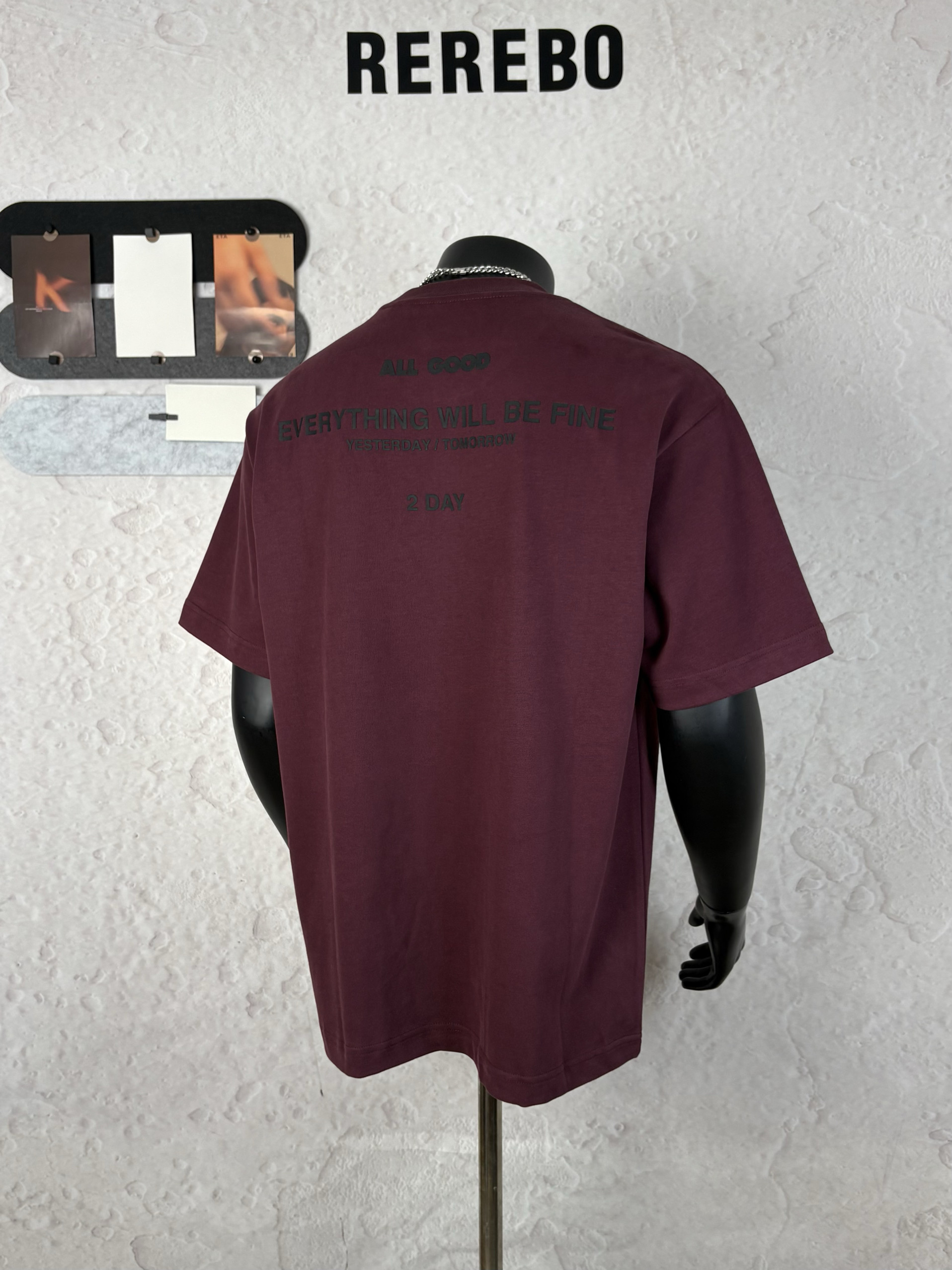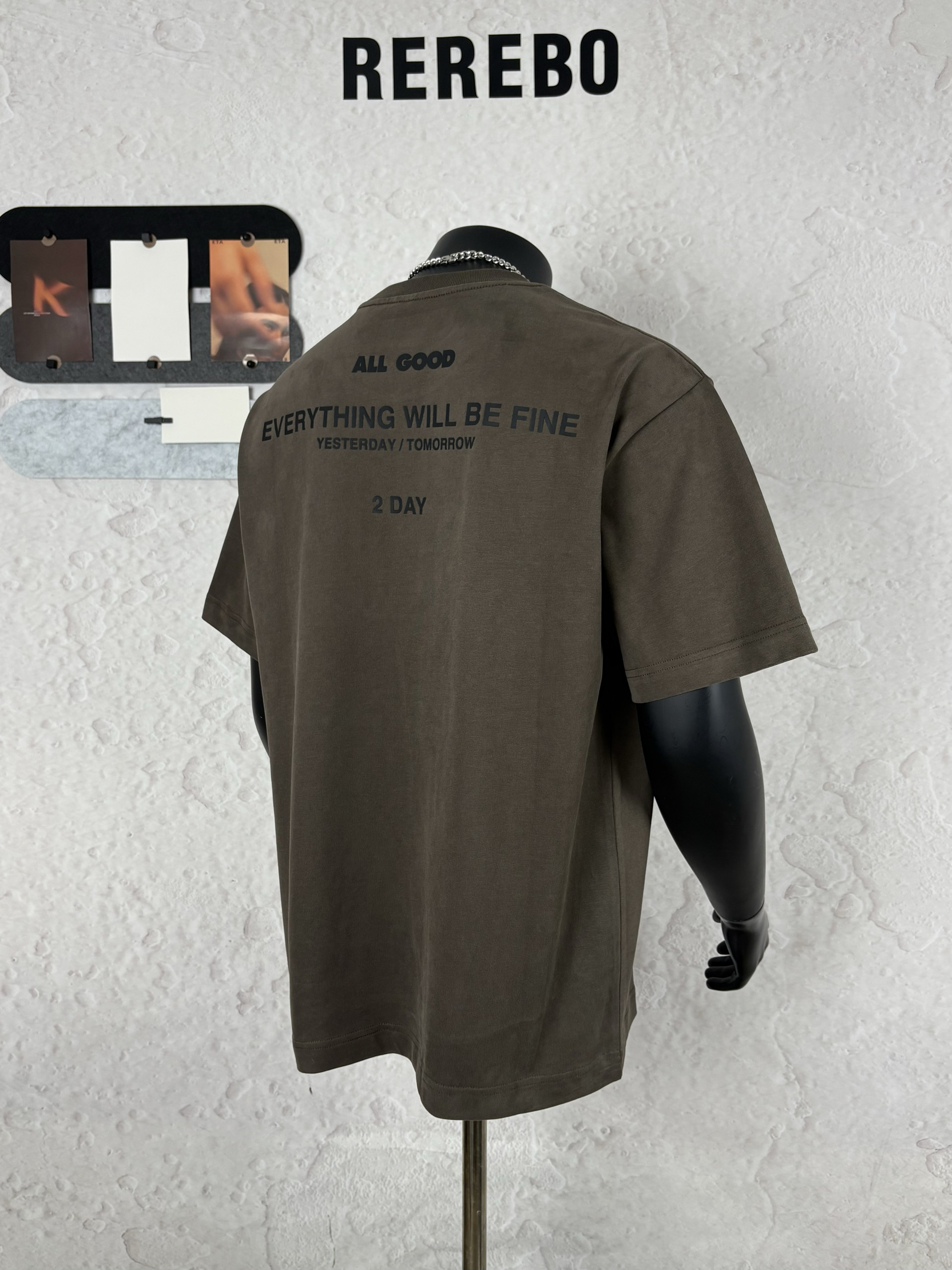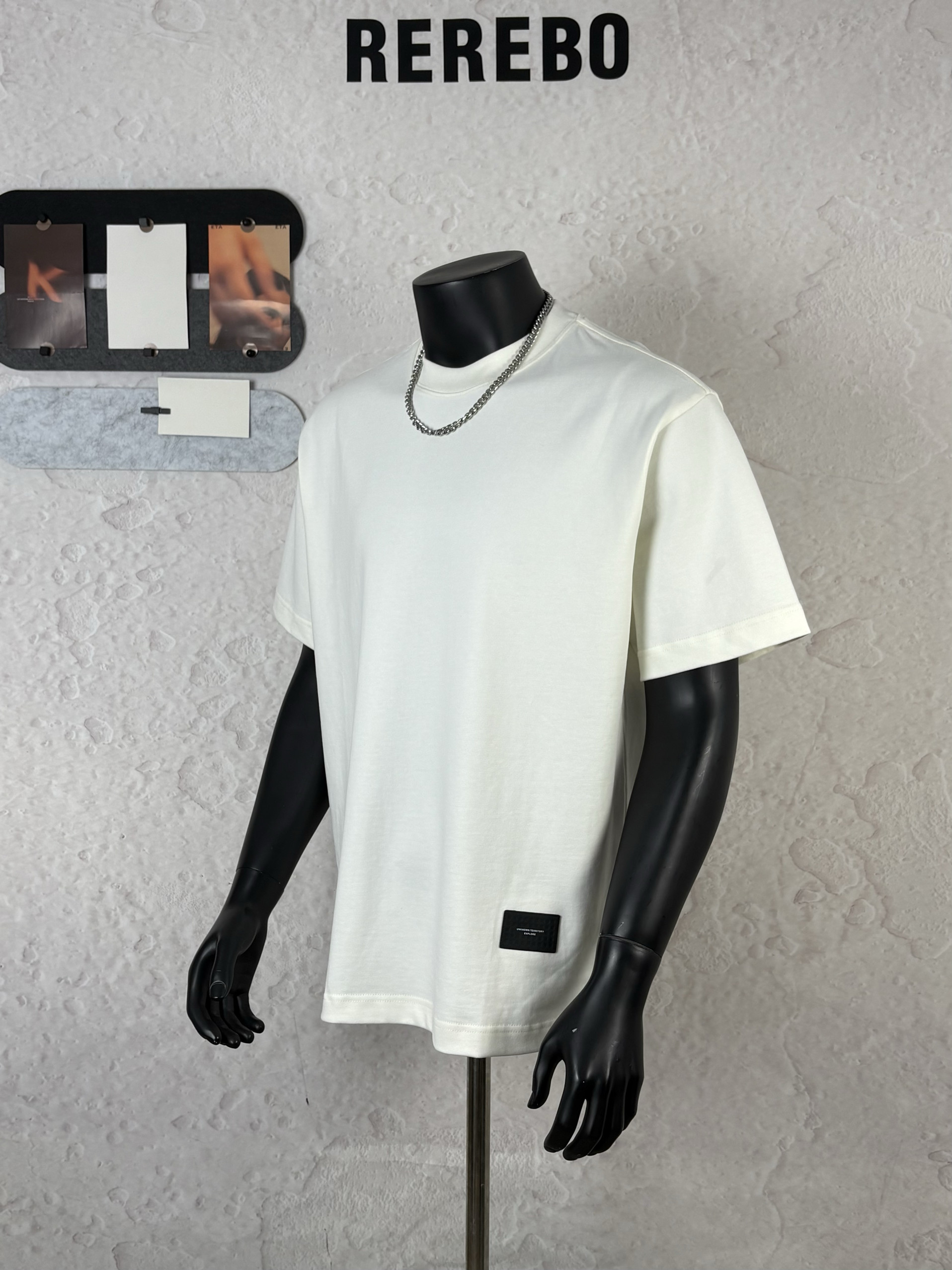 REREBO 2025秋季新款380G重磅磨毛感纯色圆领短袖T恤男潮牌打底衫