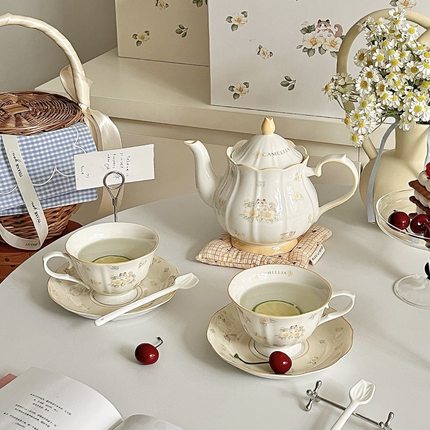 法式山茶花猫咪陶瓷茶壶套装下午茶杯碟女生生日茶具伴手礼礼盒装