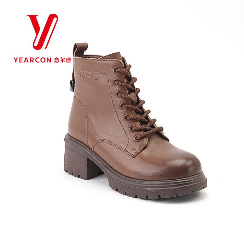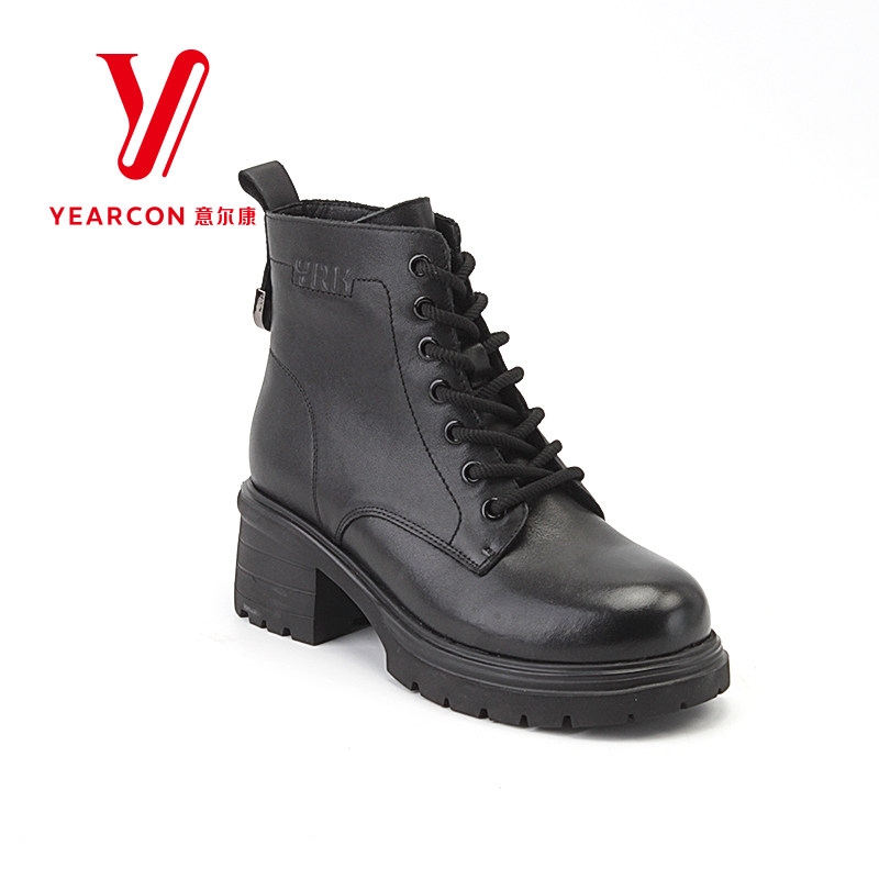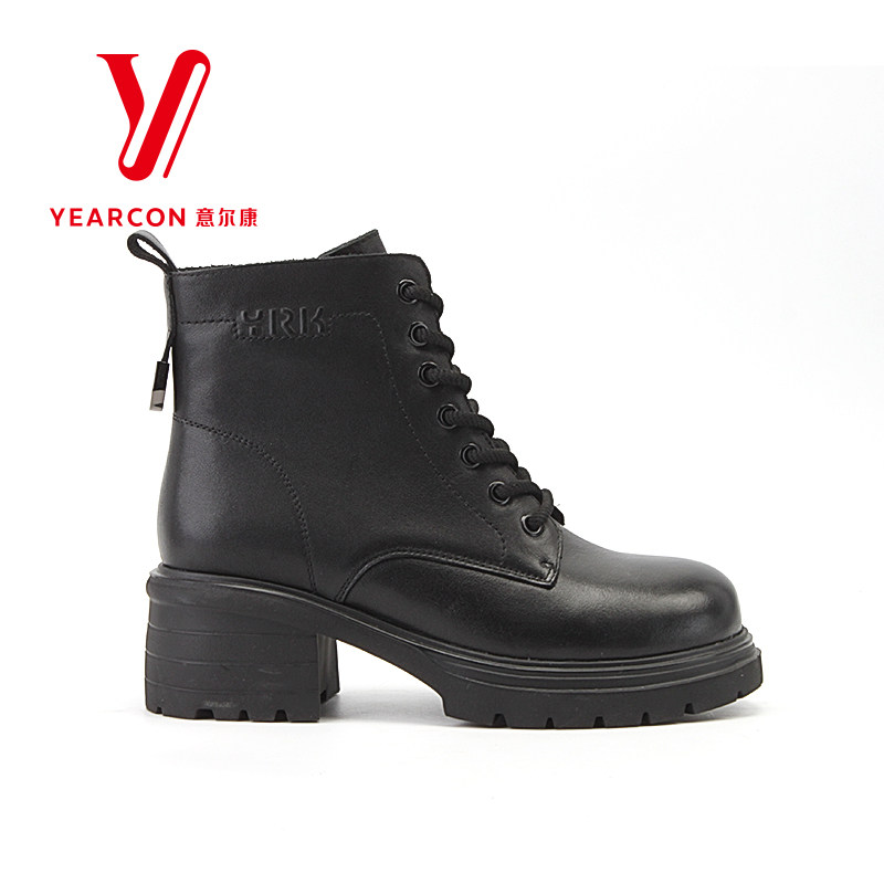 意尔康女靴2025新款秋冬季加绒马丁靴女款厚底短靴女粗跟高跟靴子