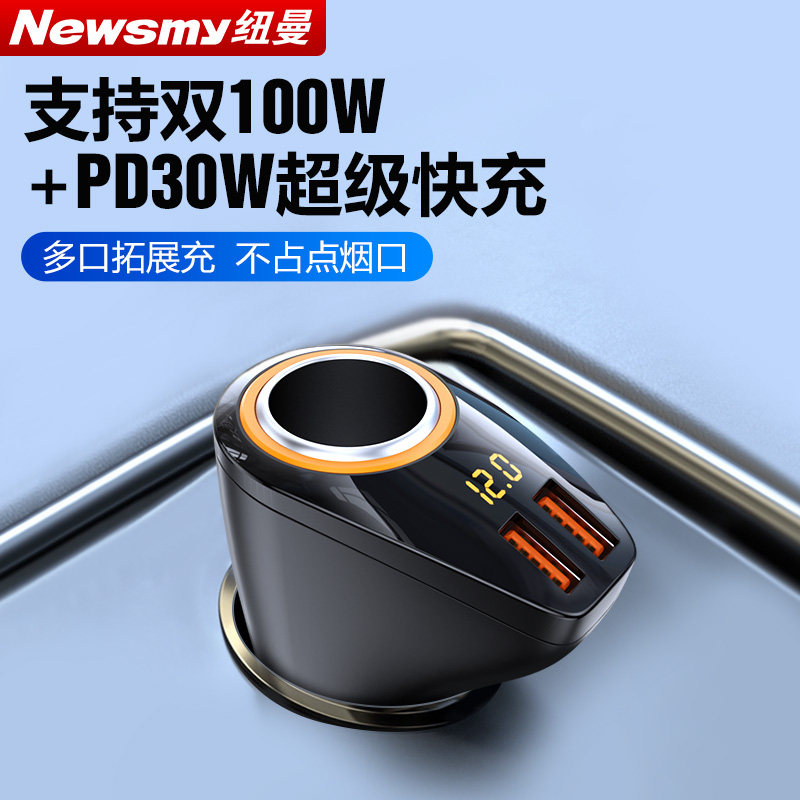 纽曼100W车载充电器超级快多功能充点烟器转换插头usb扩展口