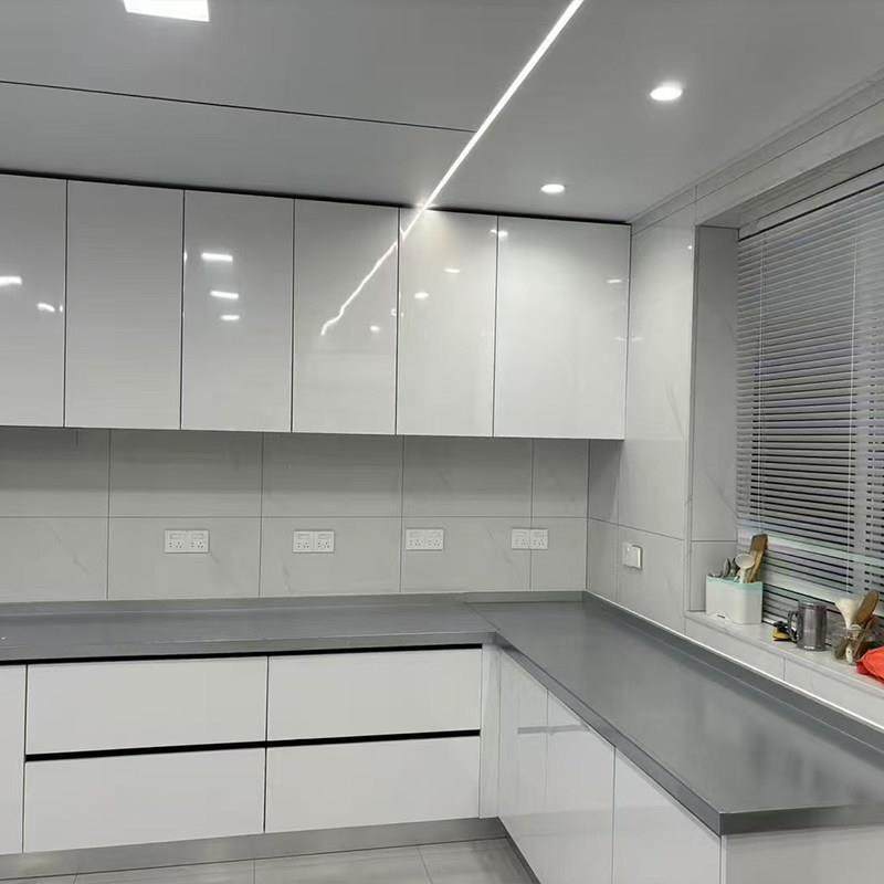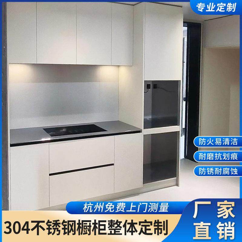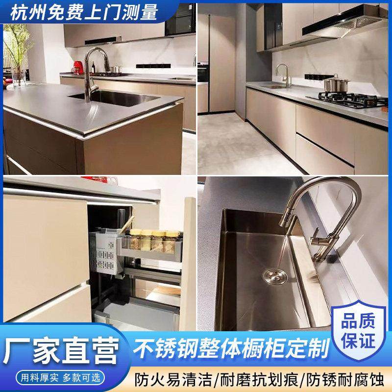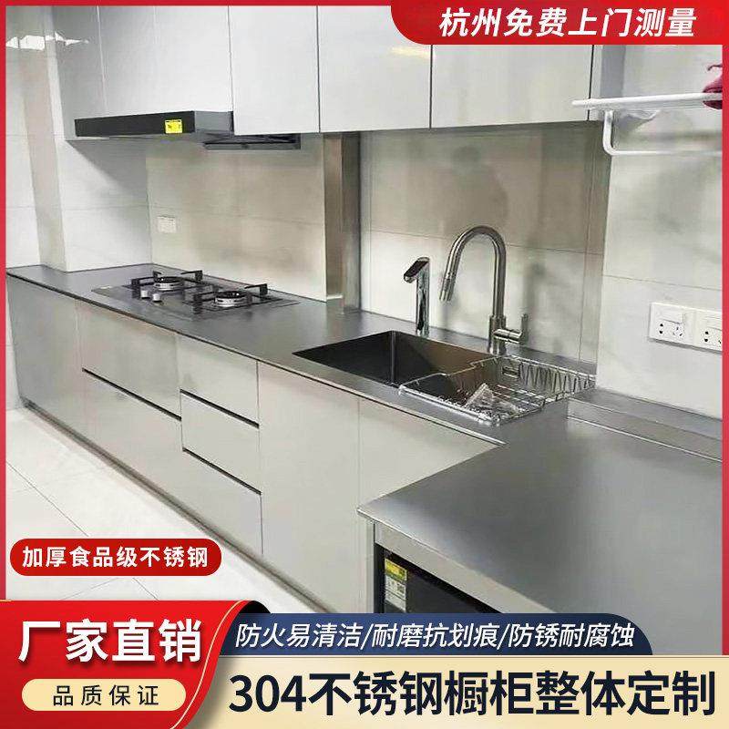 杭州不锈钢整体橱柜定制家用厨房304不锈钢实心台面一体拆旧换新