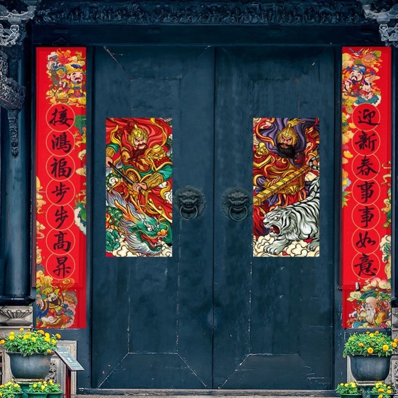 老式门画秦叔宝门贴单门传统门画门神镇宅农村大门贴画福字贴礼盒