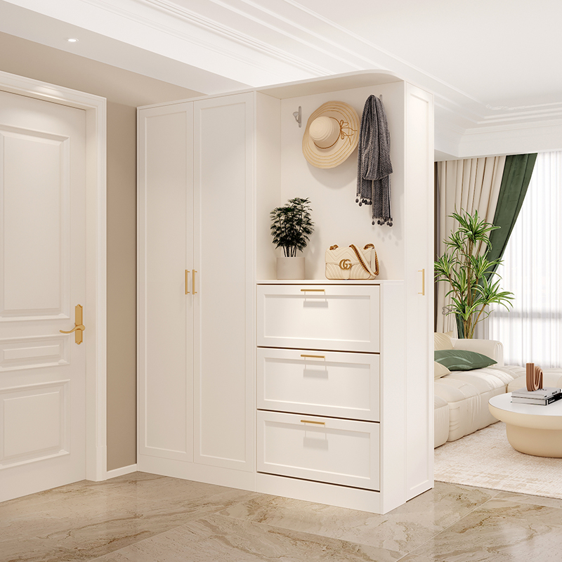 法式奶油风客厅翻斗鞋柜玄关柜一体隔断小户型入户衣柜储物柜定制