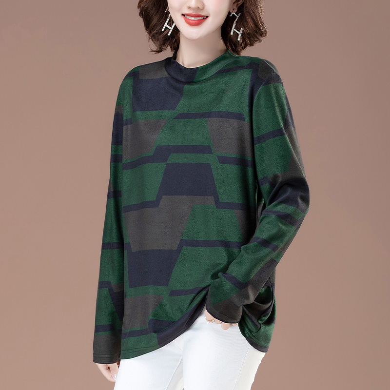 中老年妈妈春秋新款胖太太打底衫长袖高领秋衣女外穿宽松时尚上衣