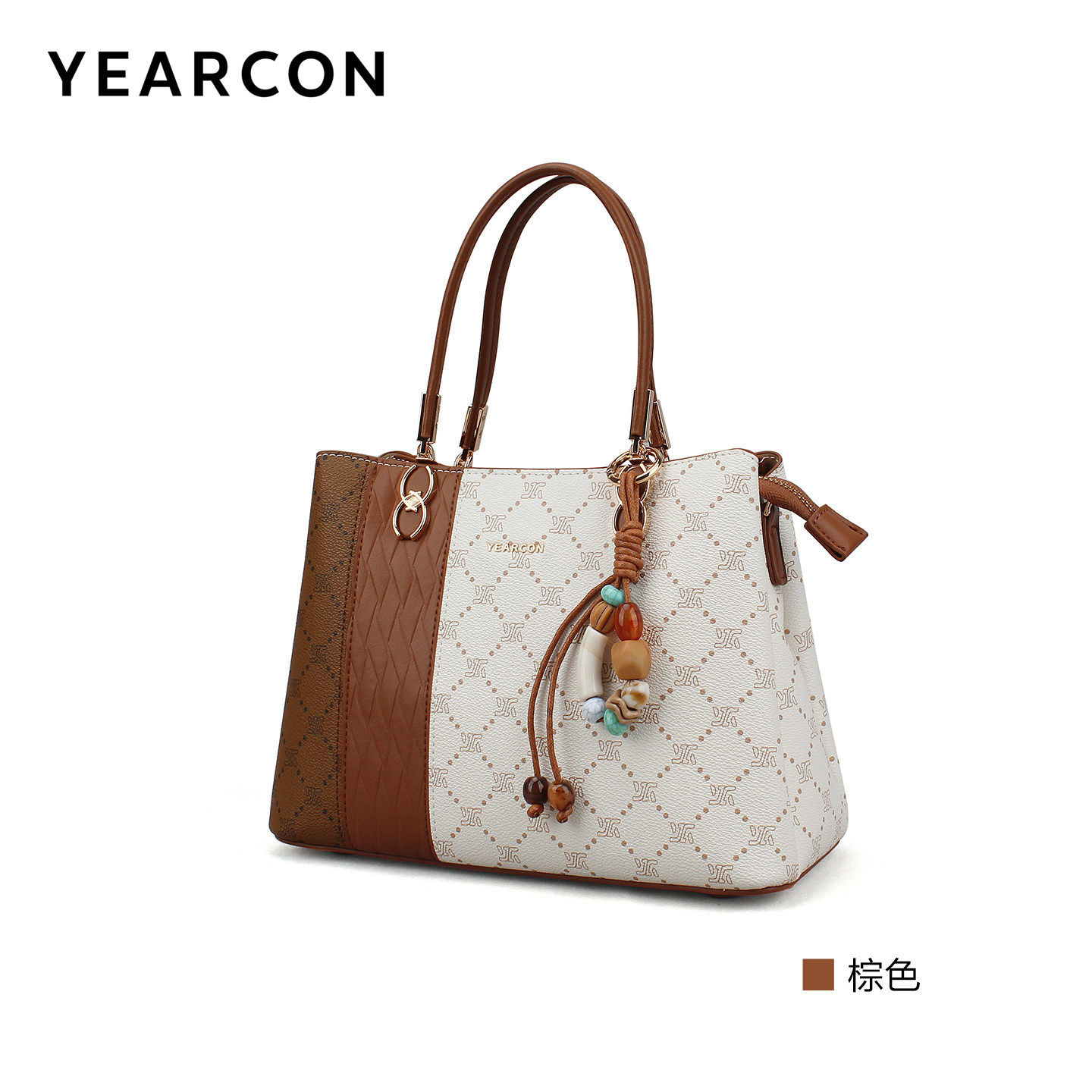意尔康女包2026春季新款女士撞色时尚印花单肩斜挎手提包61Y23051