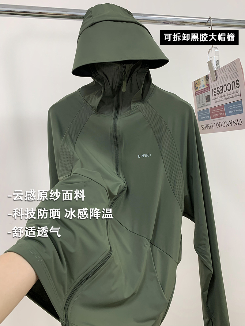 帽檐可拆卸!锦纶冰丝透气防晒衣