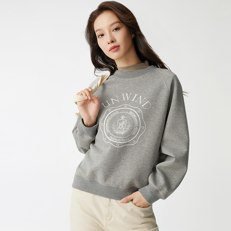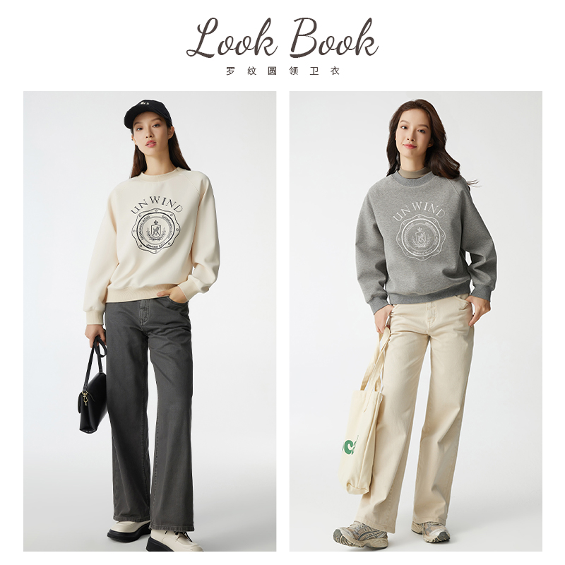 布景卫衣女冬季新品简约绣花设计感圆领套头宽松上衣外套1494