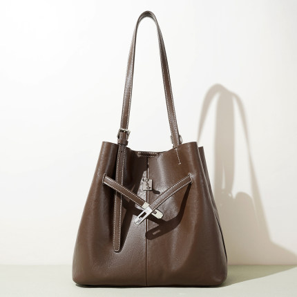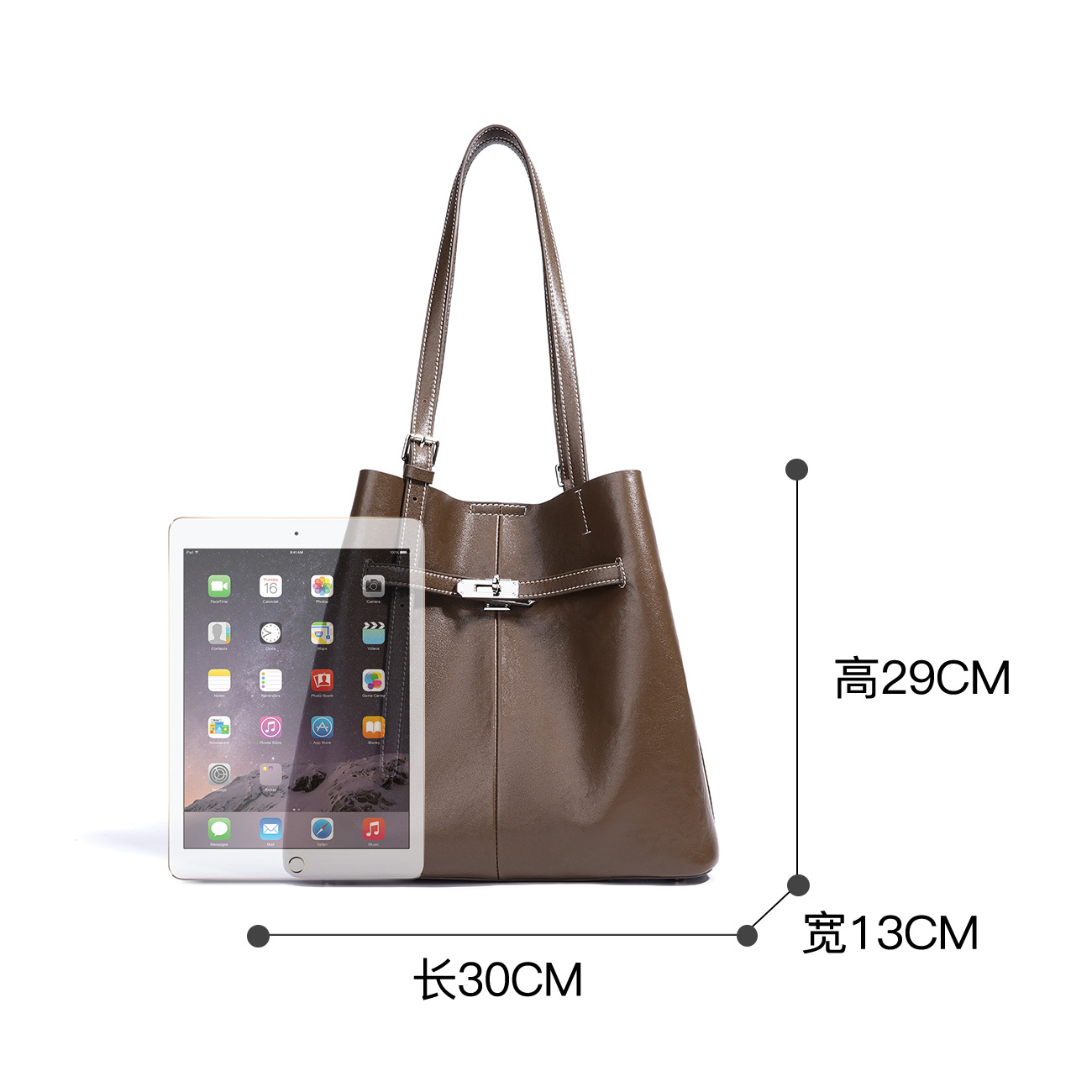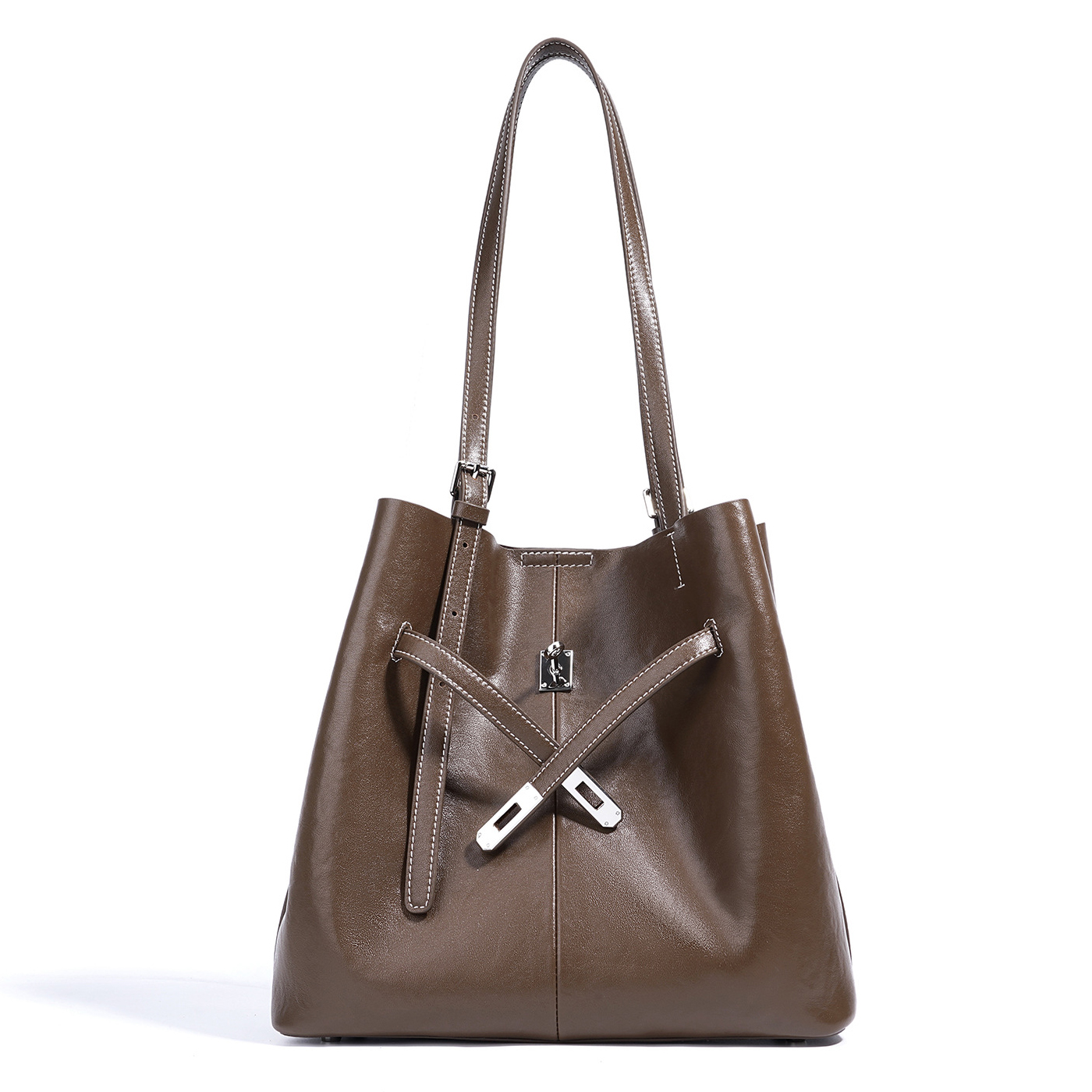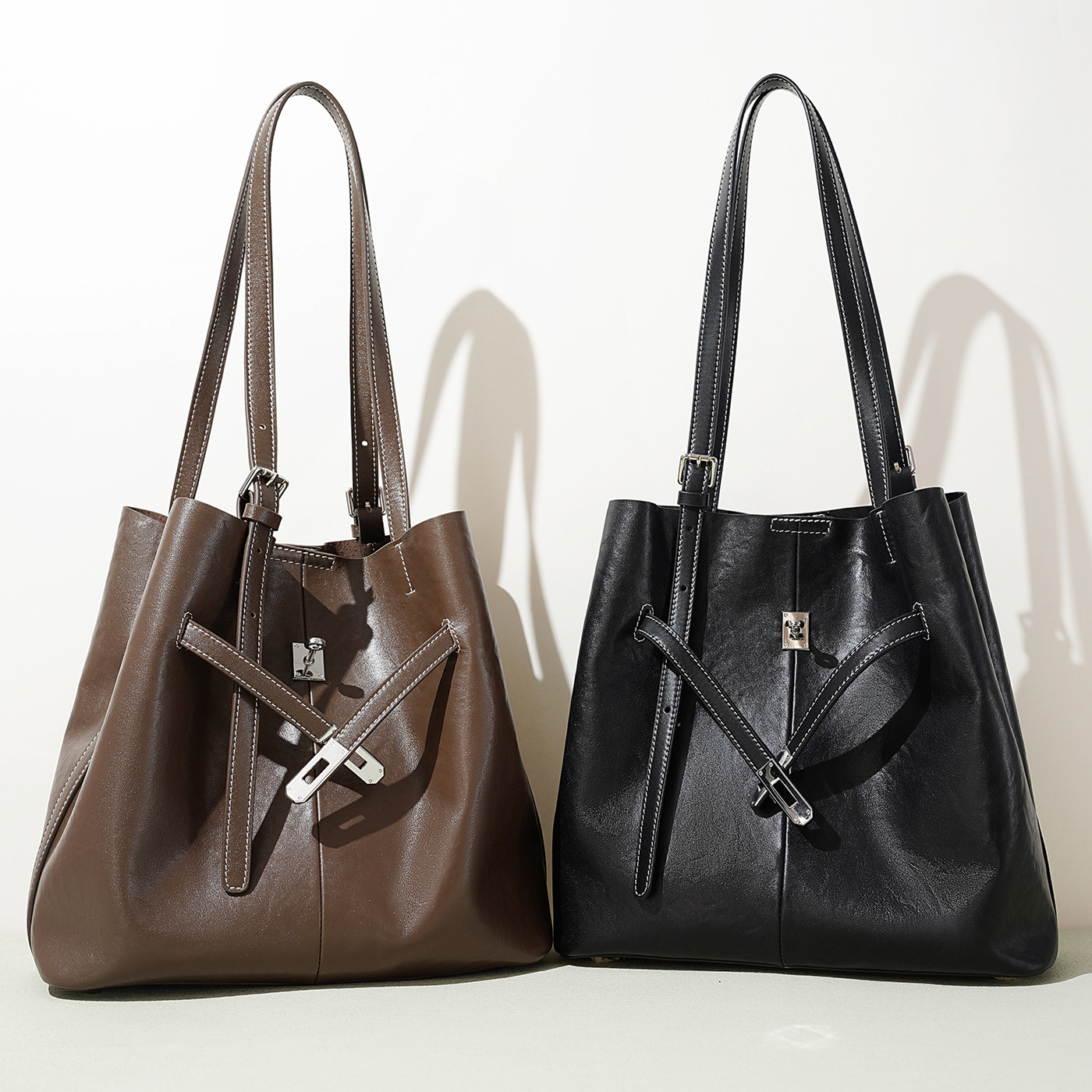 真皮腋下包女单肩包25新款欧美复古油蜡牛皮水桶包大容量通勤女包