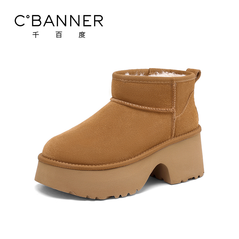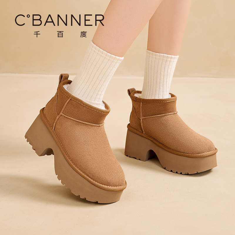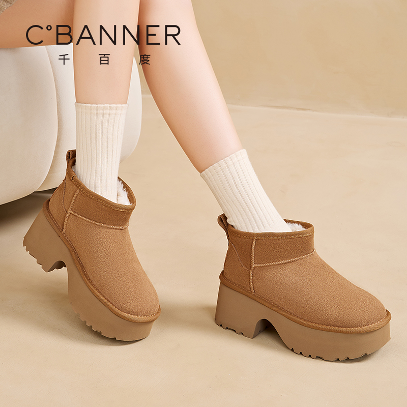 千百度厚底短筒雪地靴女冬季2025新款百搭外穿棉鞋加绒保暖短靴女
