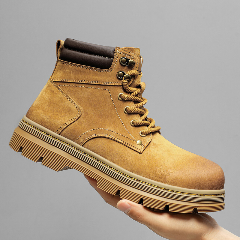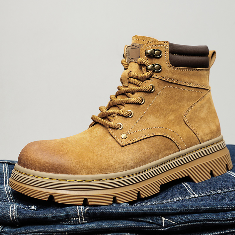 马丁靴男秋季高帮英伦风复古工装靴男士运动厚底增高大码46大黄靴