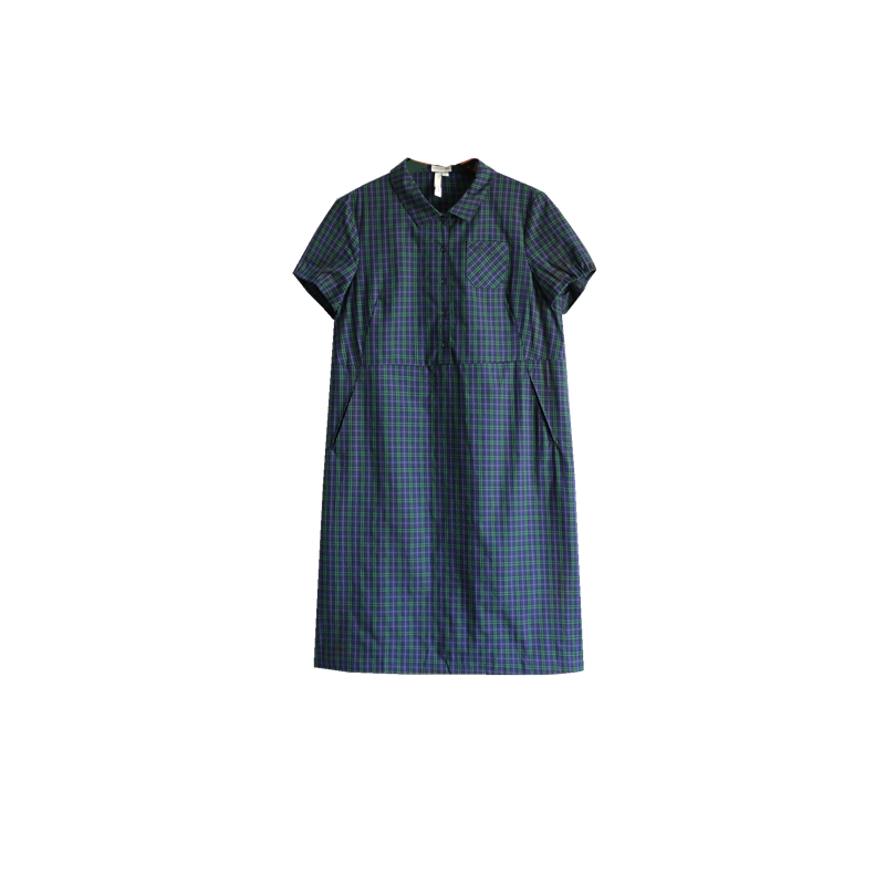 YUN韫2025夏季新品女装衬衫领半开扣门襟格纹显瘦气质连衣裙 5718