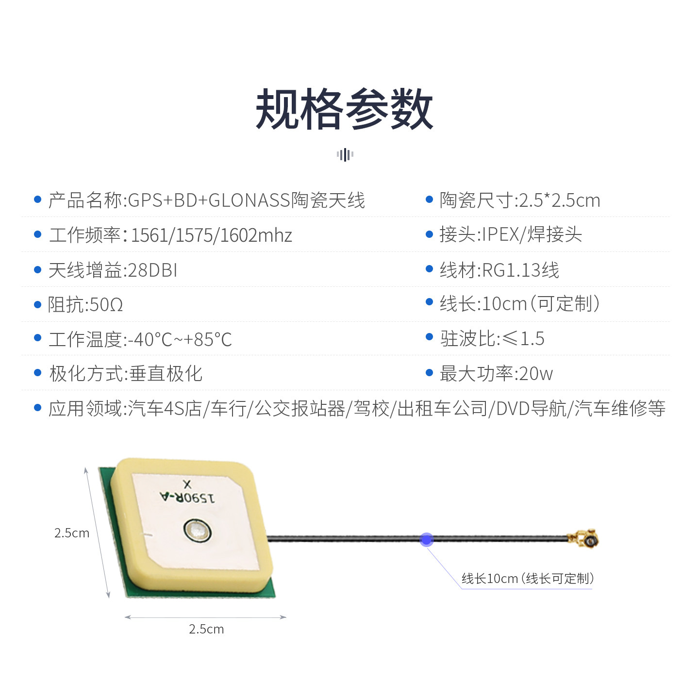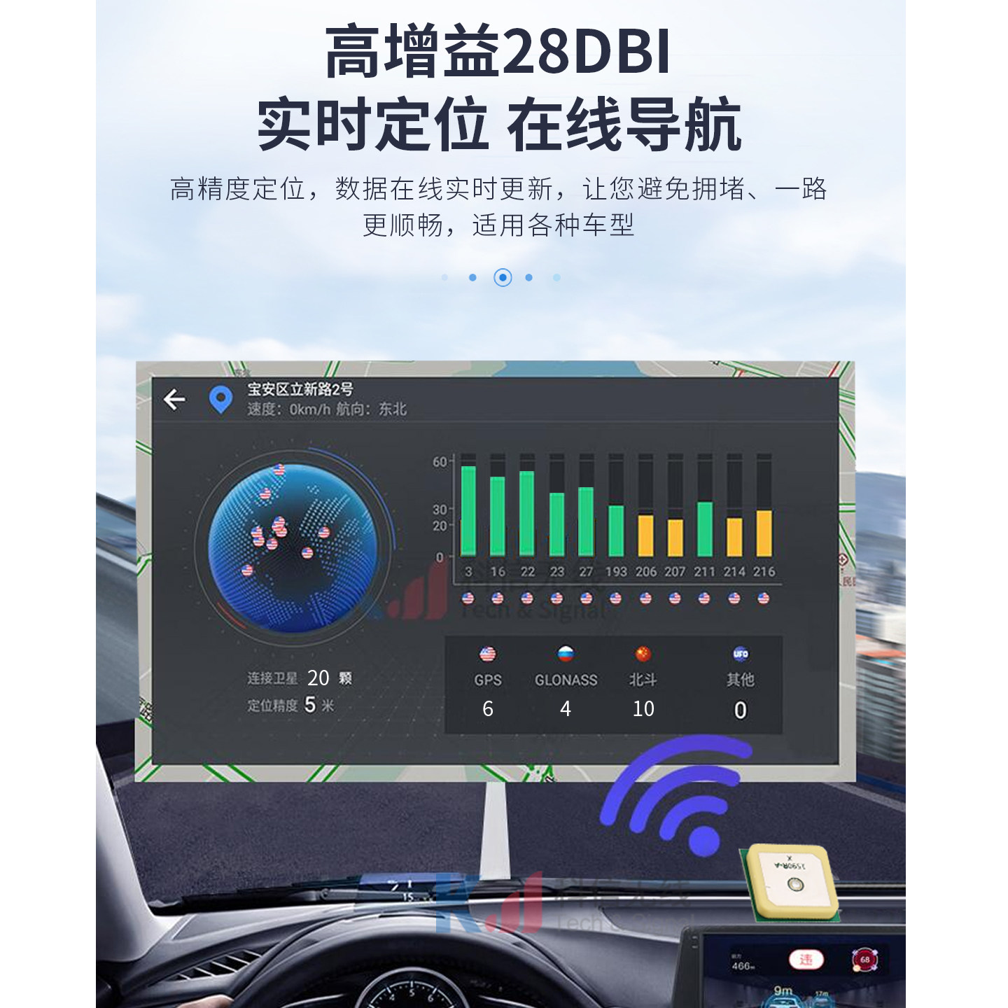 有源GPS北斗BD+GLONASS三模陶瓷高增益28DB车载导航卫星定位天线