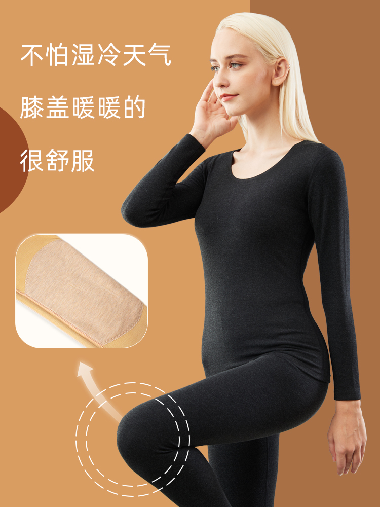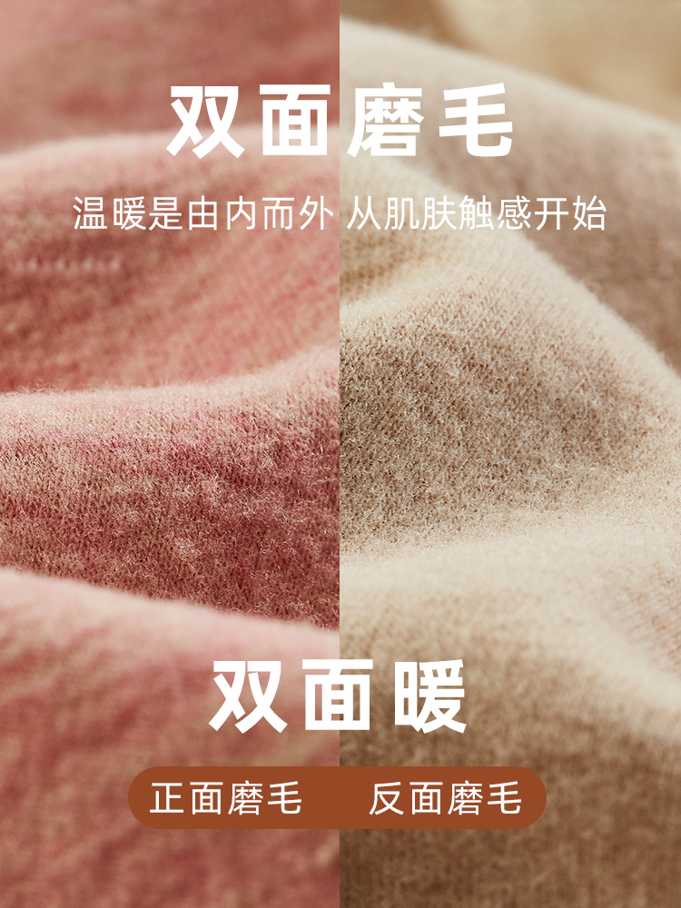 花系德绒无痕保暖内衣男士秋衣秋裤女套装加绒加厚防寒护膝秋冬季