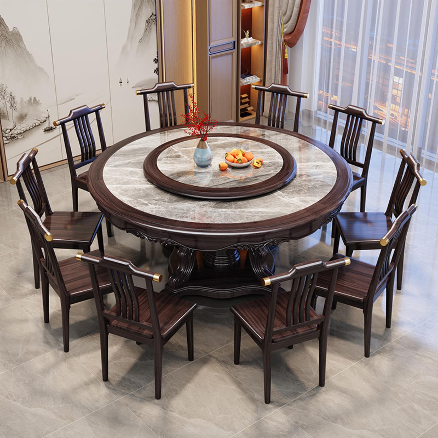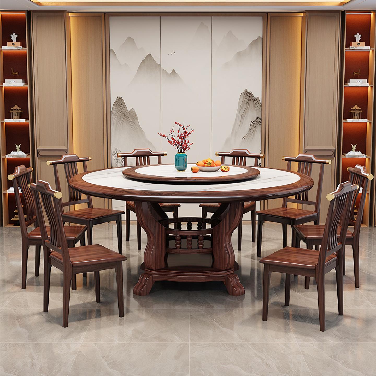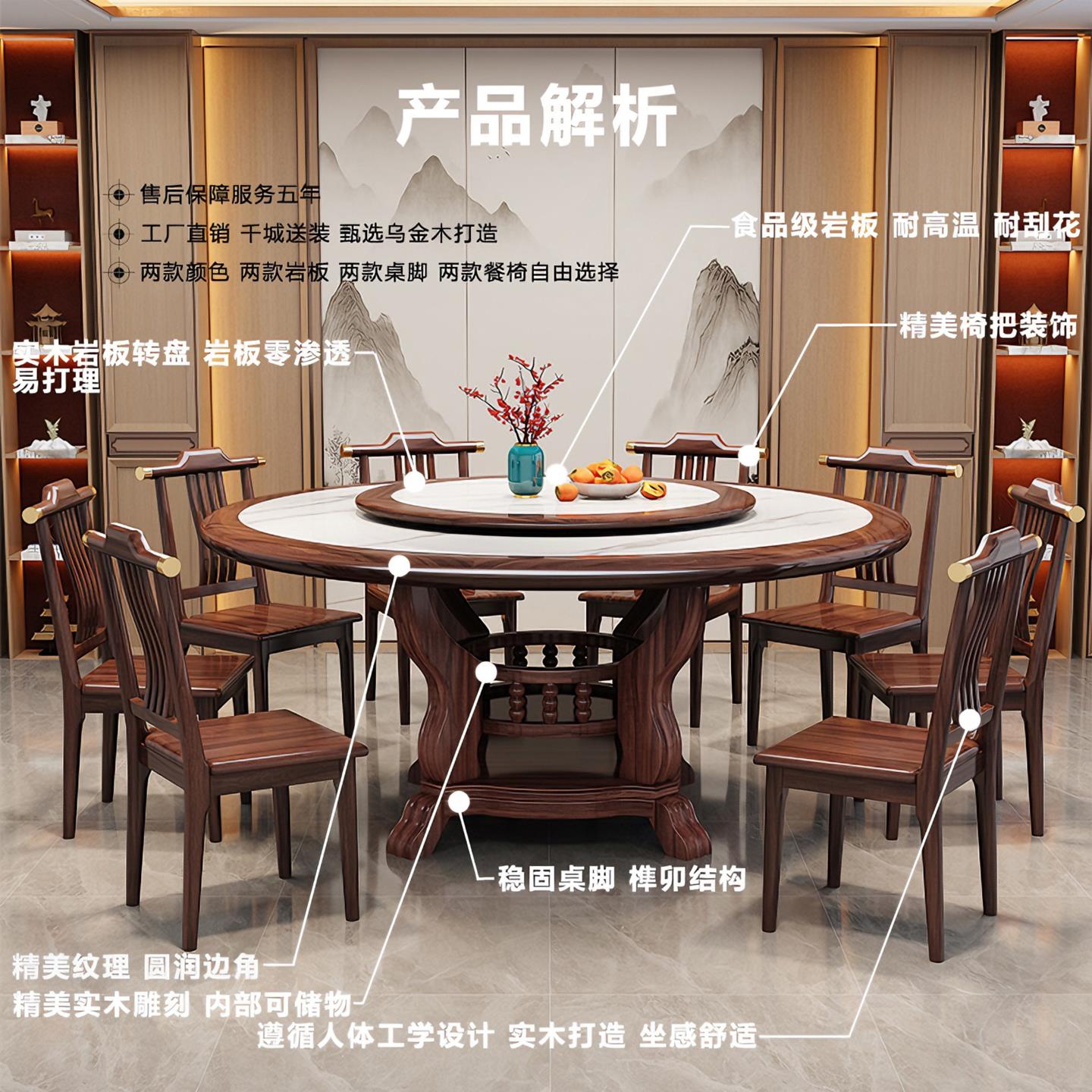 新中式岩板实木餐桌椅子一套圆桌家俱酒店小中大坪数通用圆餐桌米