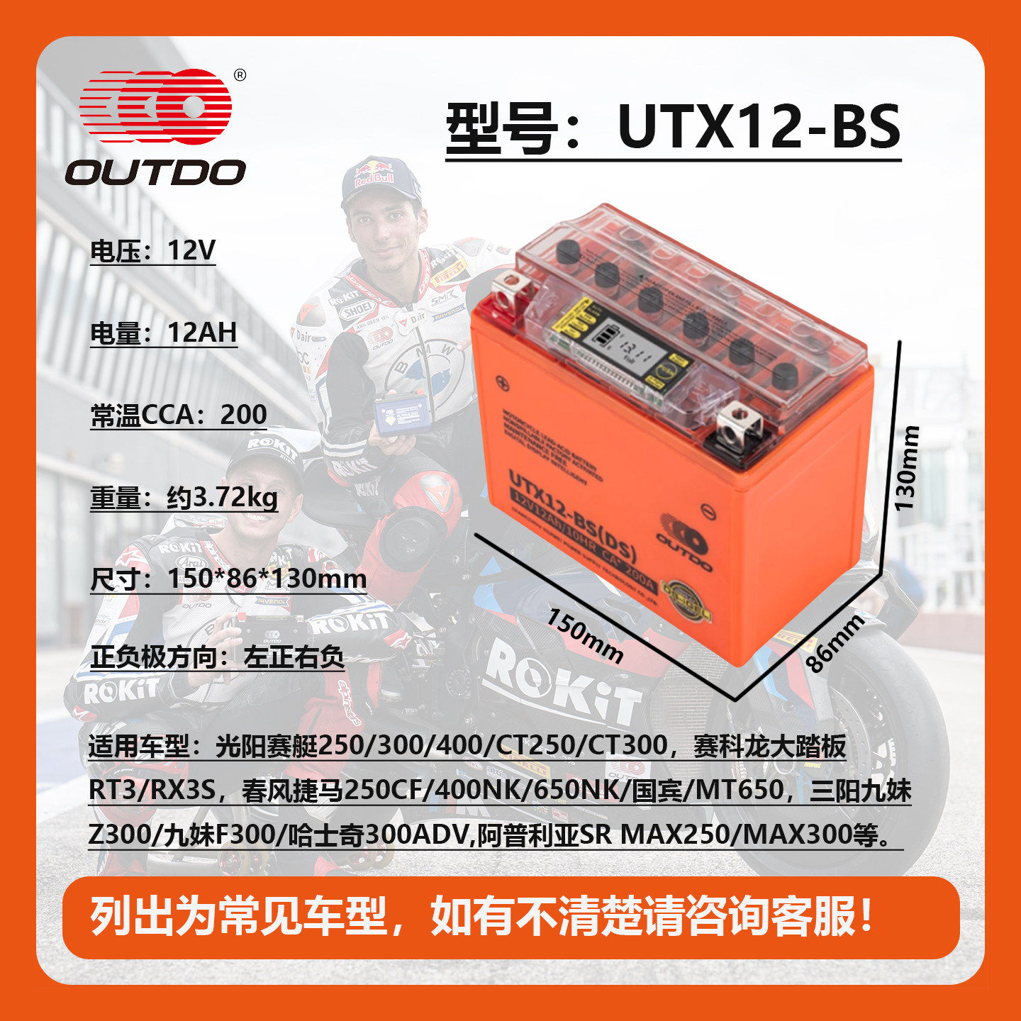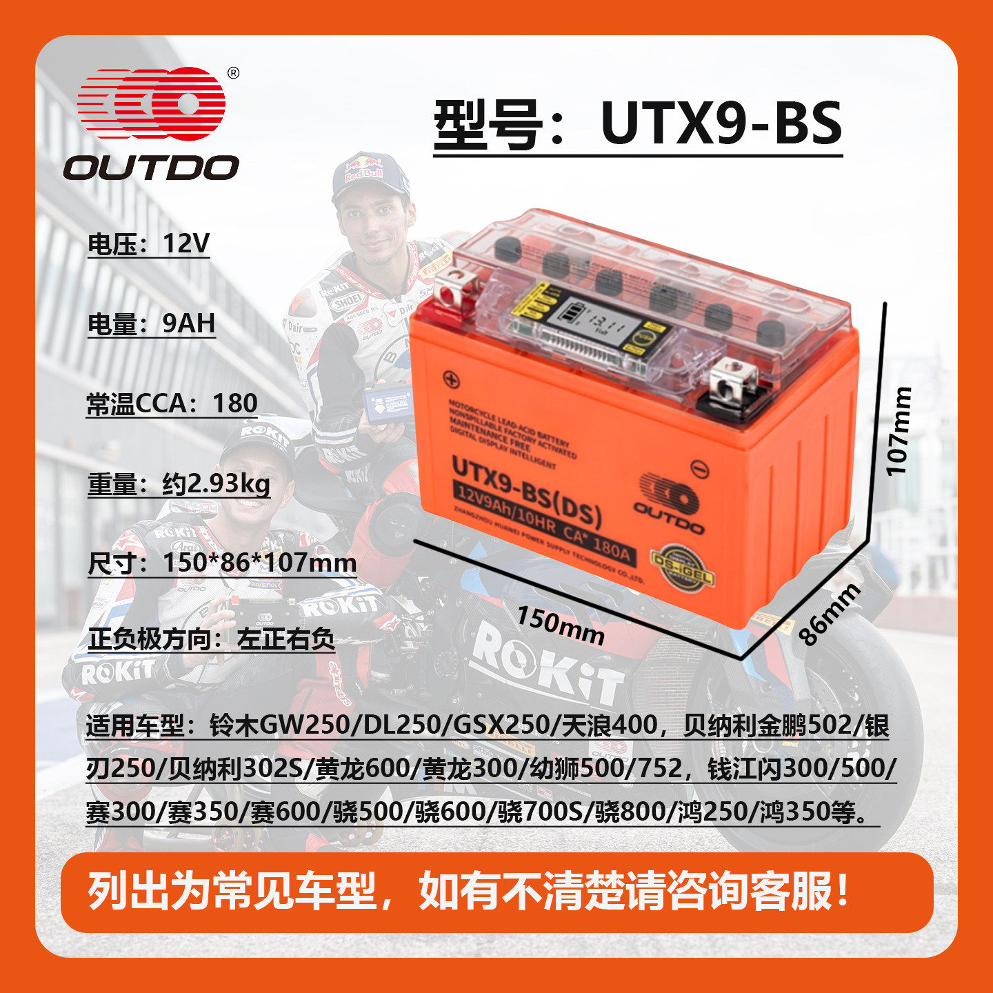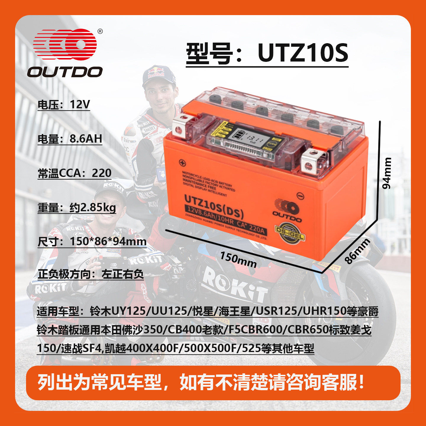奥特多全系摩托车电池12V电瓶 数显加强版 胶体蓄电池 免维护