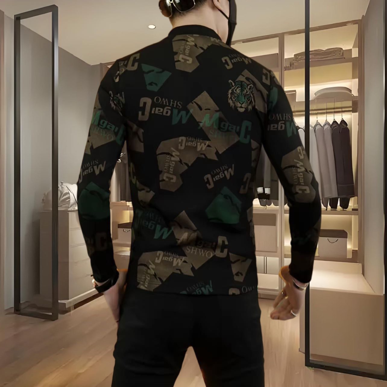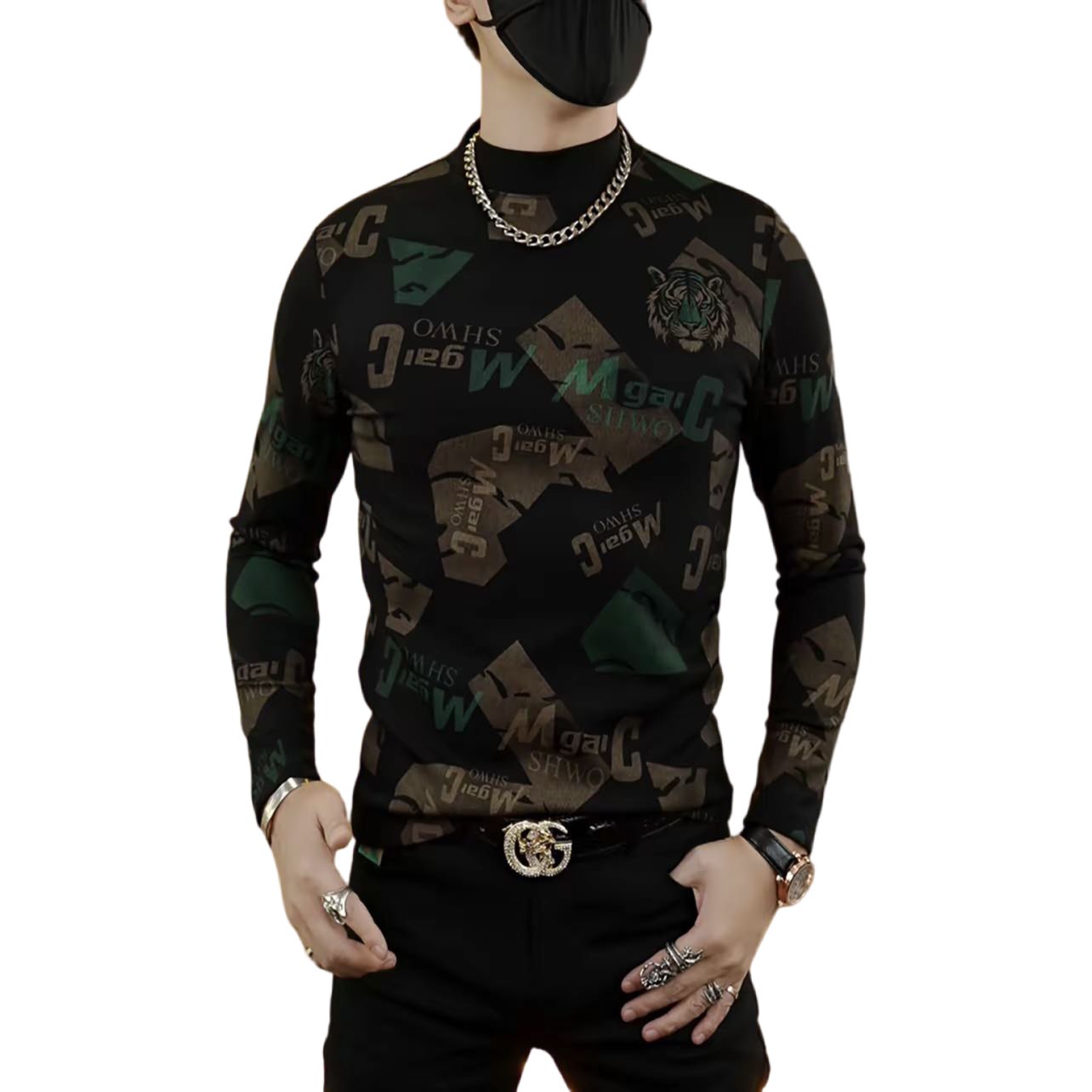 欧洲站秋冬季男士长袖卫衣潮牌时尚个性印花圆领修身百搭打底上衣