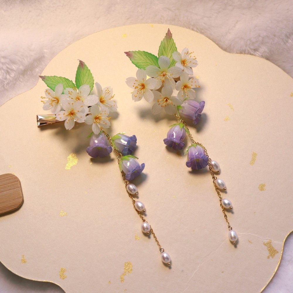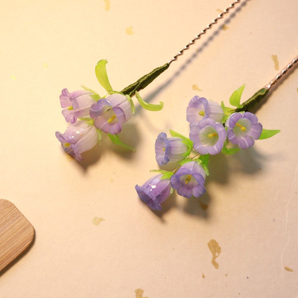 【柳絮风轻】紫色风铃草发簪流苏发夹原创设计手工汉服配饰热缩花