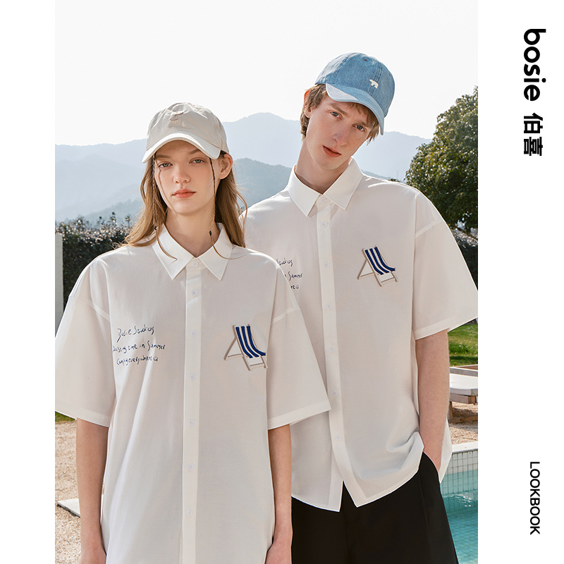 bosie伯喜2025年夏季新款沙滩椅绣花设计短袖衬衫男情侣青少年潮