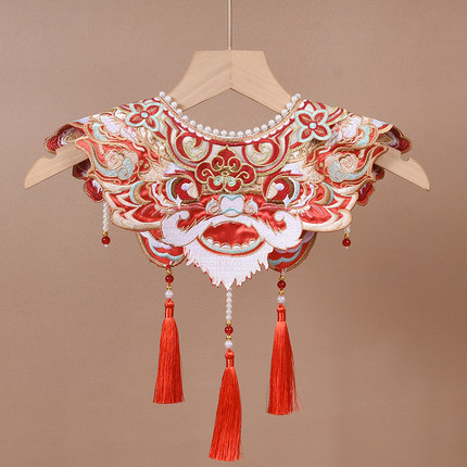 古风汉服云肩狮子刺绣过年假领