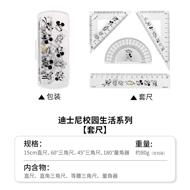 日本KOKUYO国誉迪士尼联名米奇校园生活套尺四件套尺子直尺多功能