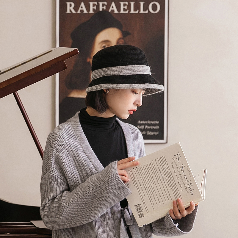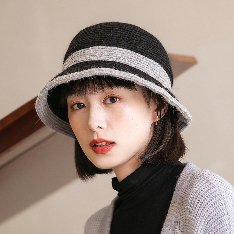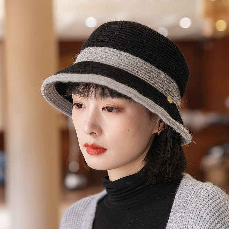 兔毛渔夫帽女秋冬新款时尚针织保暖盆帽日系百搭遮阳帽冬天帽子女