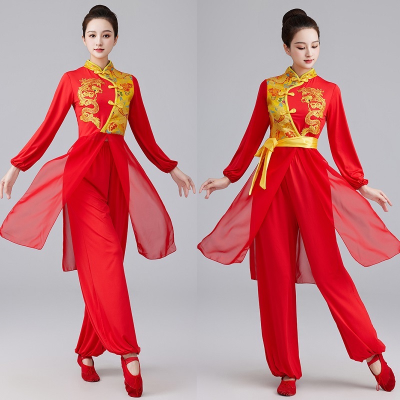 龙纹广场舞服装2025新款春女民族风舞蹈服喜庆打鼓服表演出服套装