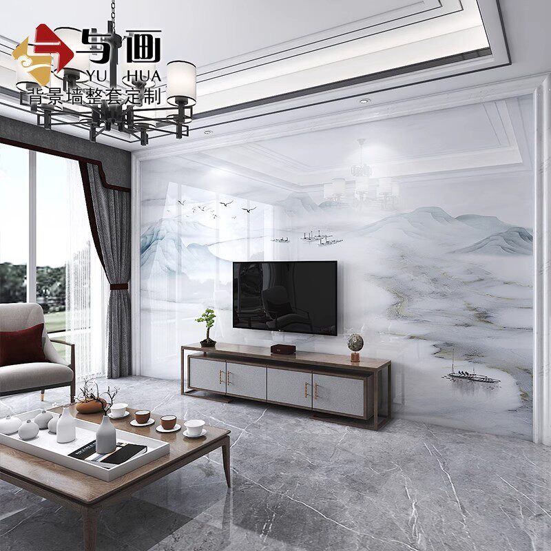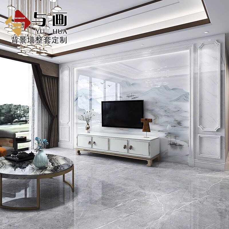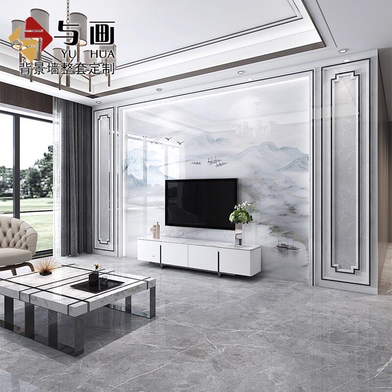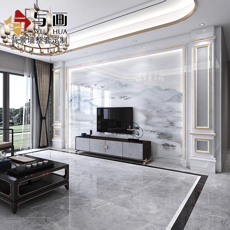 瓷砖电视背景墙简约轻奢石材大理石大板客厅新中式微晶石影视装饰