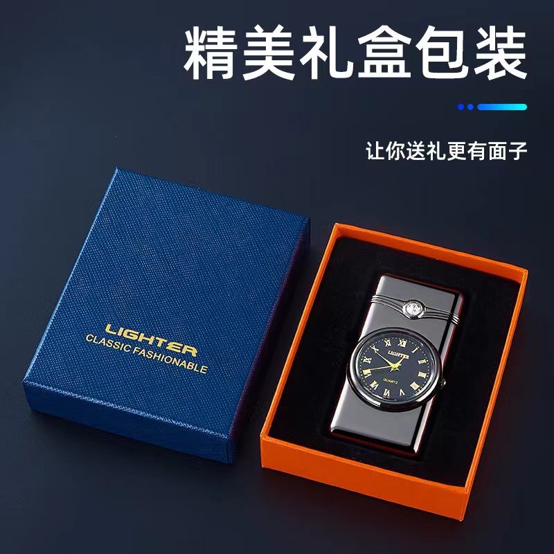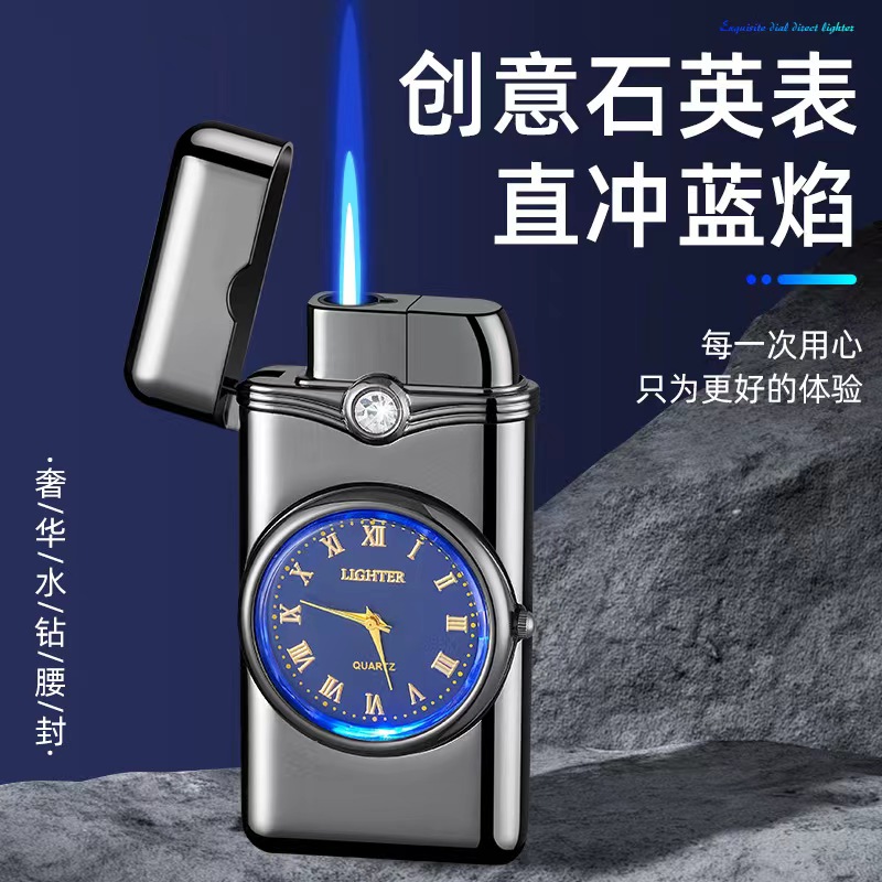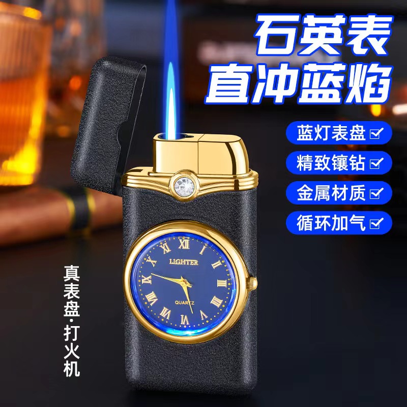 新款创意蓝灯石英表防风充气打火机个性直冲蓝焰金属耐用送男朋友