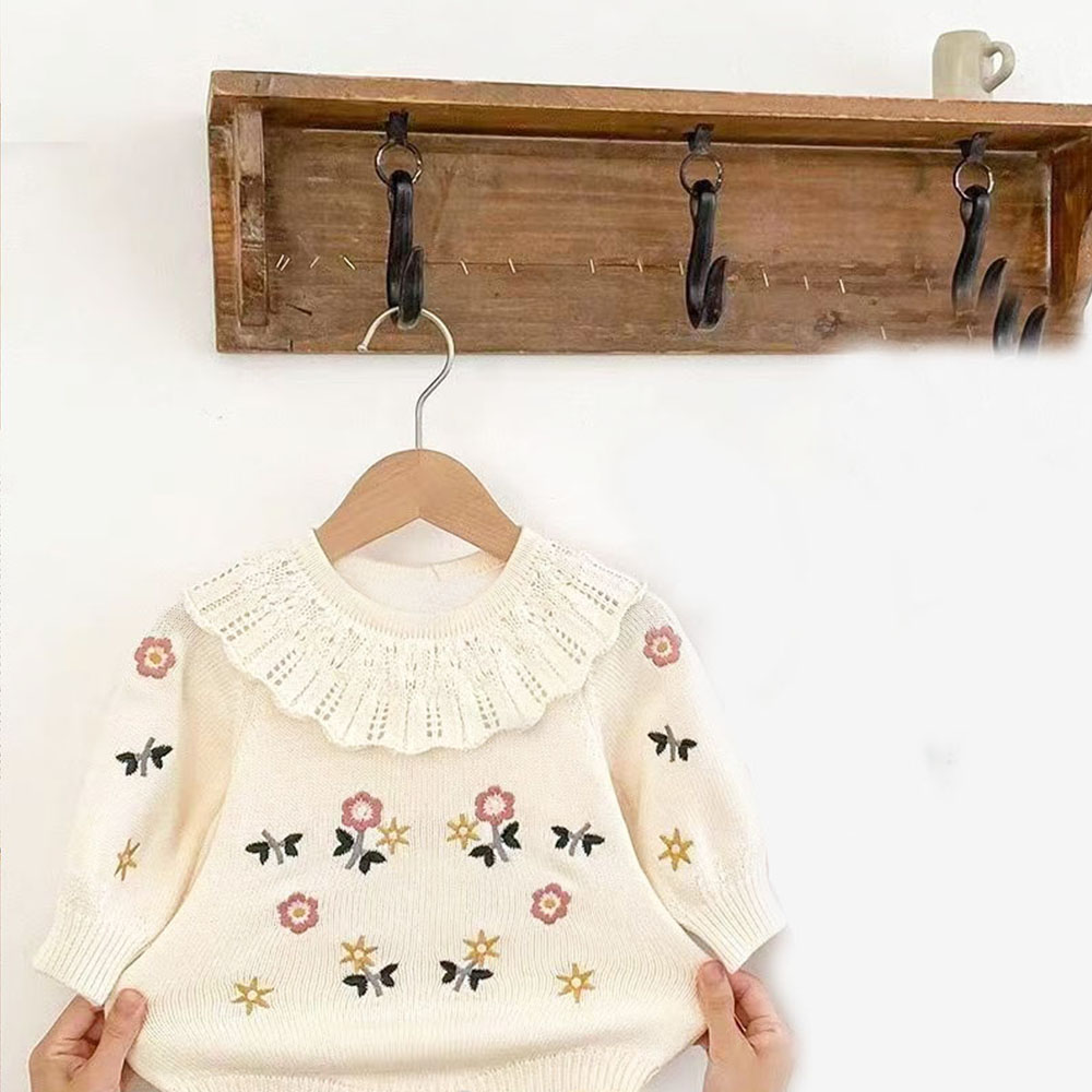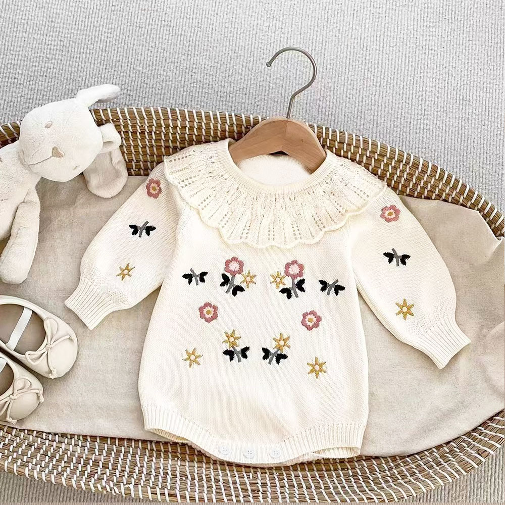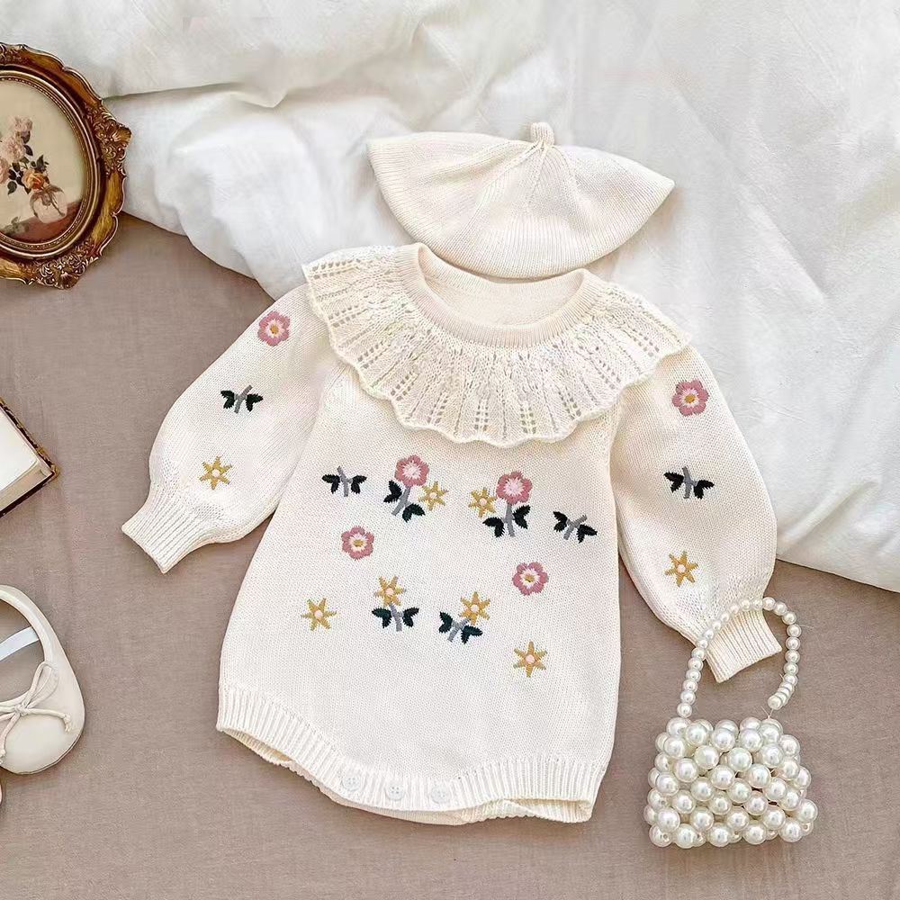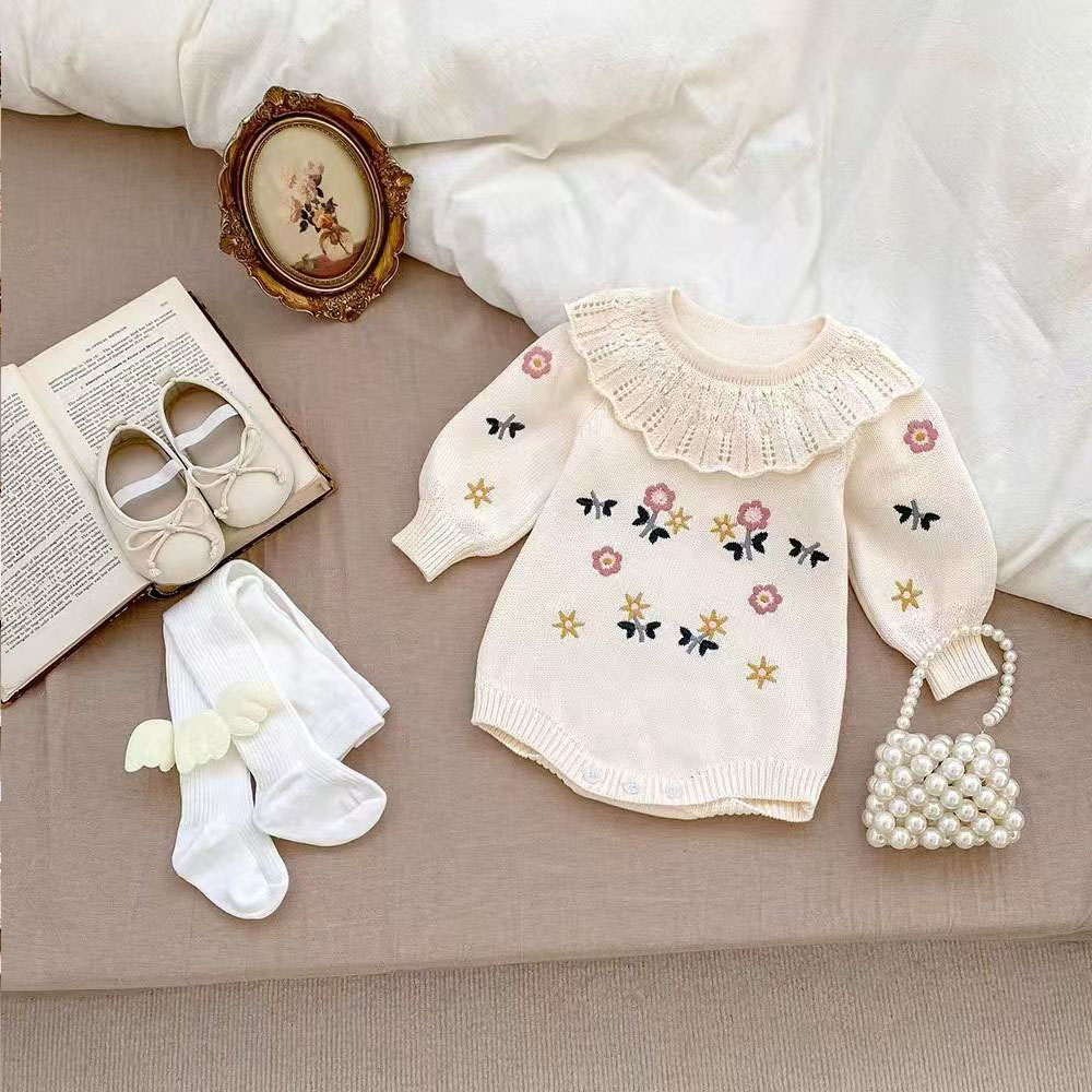 婴儿秋装女宝宝公主包屁衣绣花针织衫毛衣百天周岁礼服连体衣