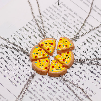 韩版学生卡通披萨项链百搭潮流可爱好朋友闺蜜生日礼物多人锁骨链