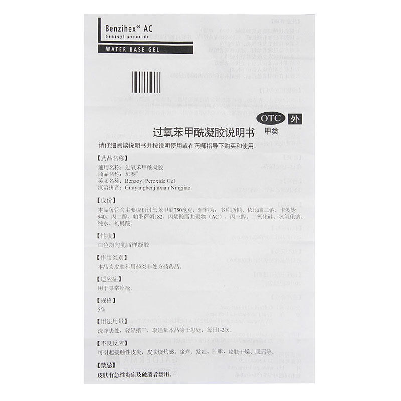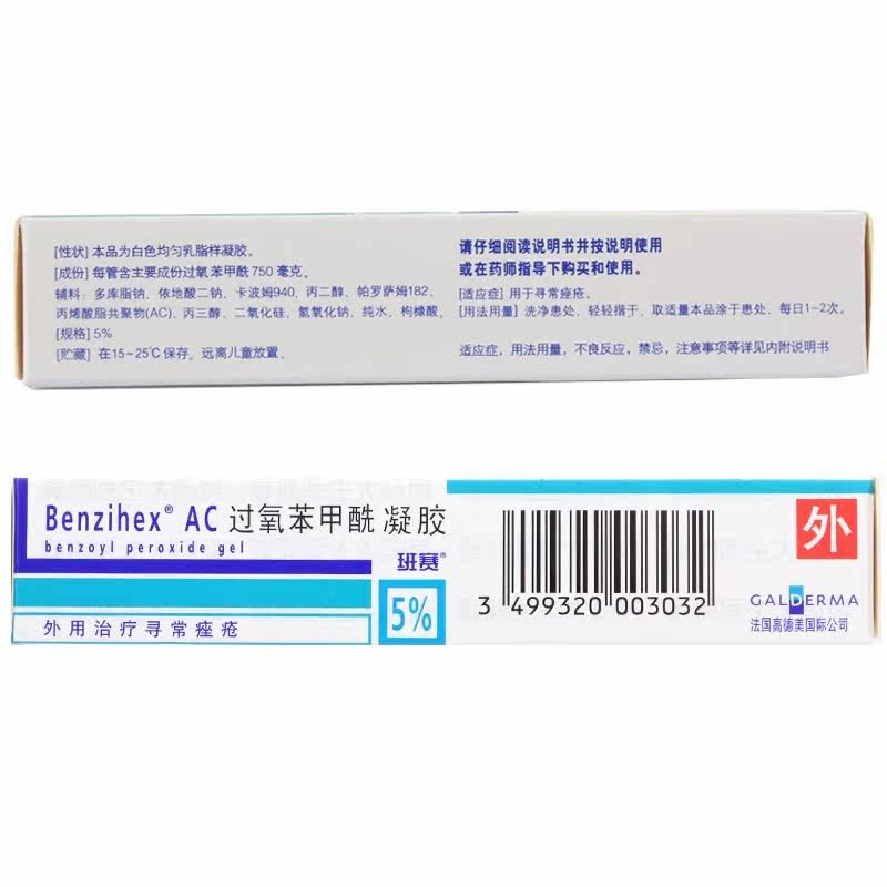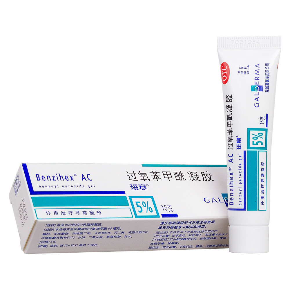 班赛过氧苯甲酰凝胶15g:(5%)*1支/盒 痘痘青春痘暗疮祛痘外用