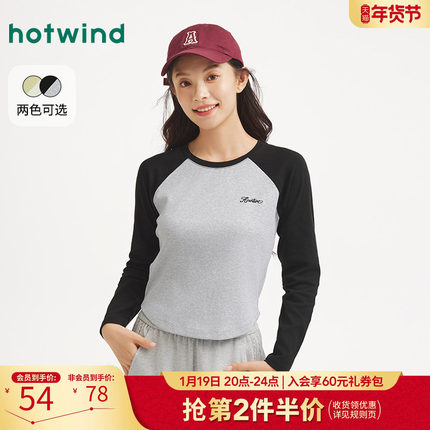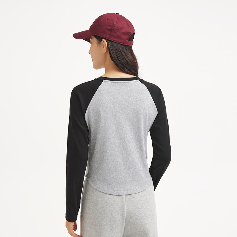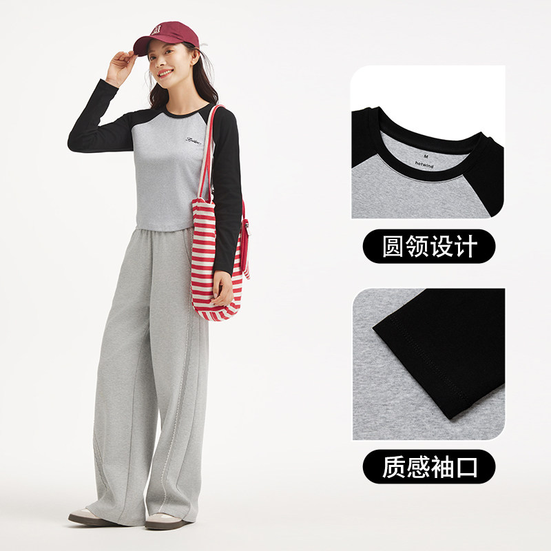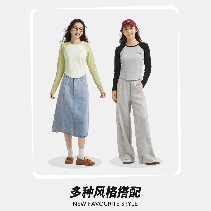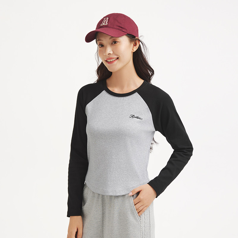 热风女士长袖T恤上衣2025年秋季新款刺绣插肩长袖T小个子打底衫