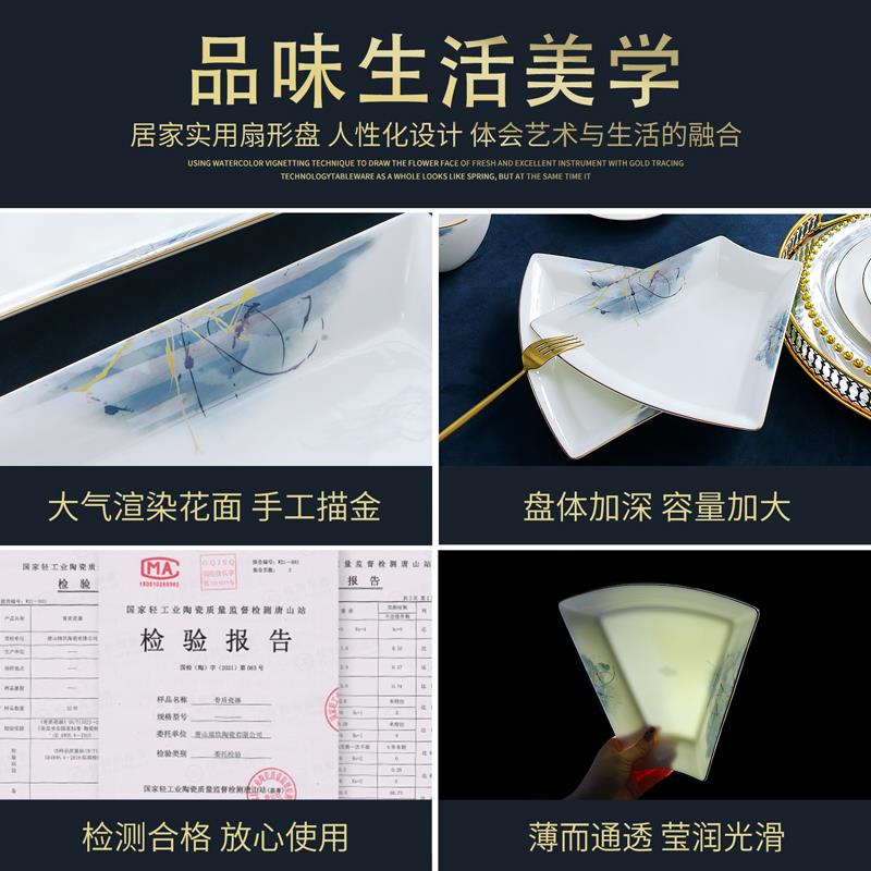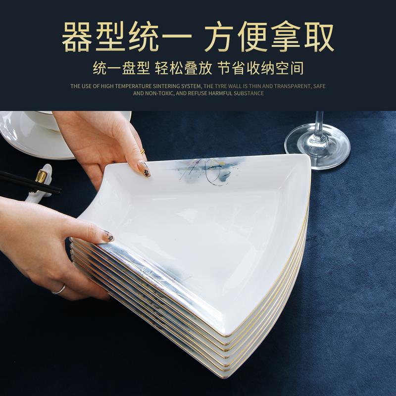 网红骨瓷拼盘餐具组合创意家用深盘年夜饭餐具套装组合圆桌盘子