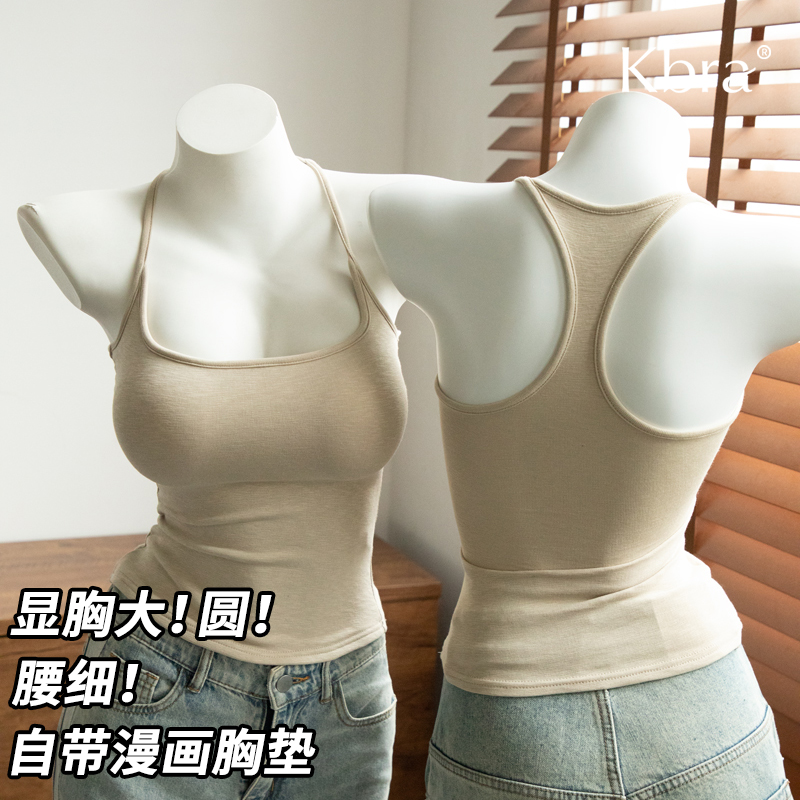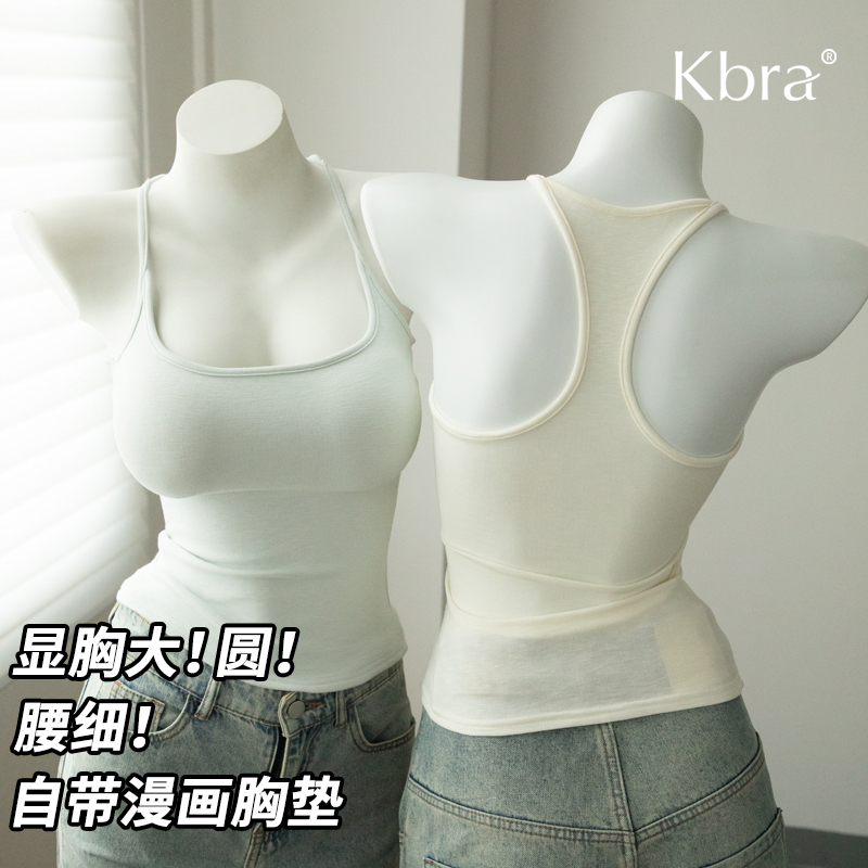 Kbra工字挂脖带胸垫吊带背心女小胸显大显腰细夏内搭外穿修身上衣