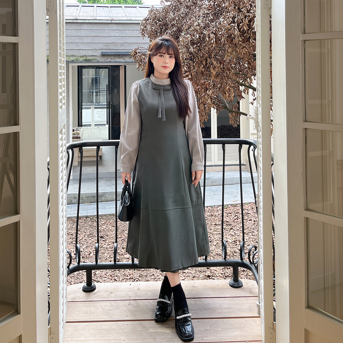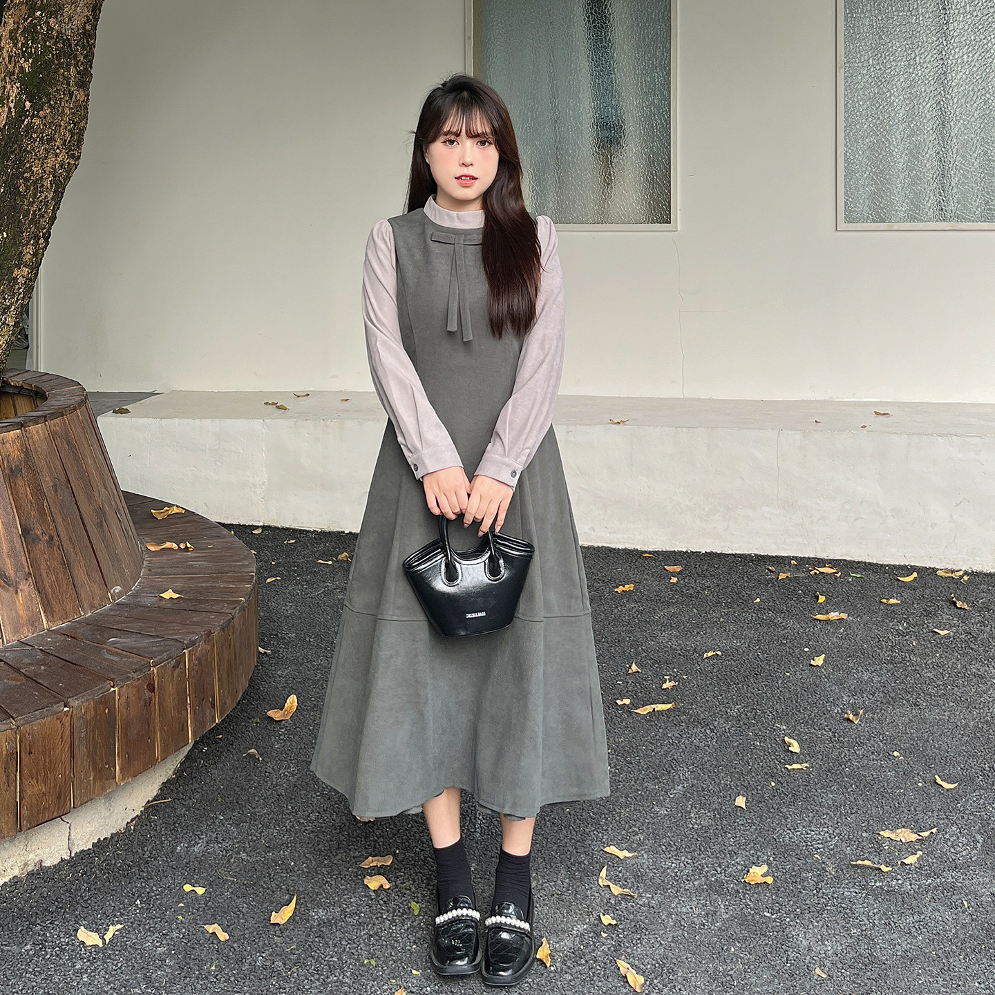 慕翎大码女装胖mm秋冬新款显瘦连衣裙女遮肉韩版裙子假两件连衣裙