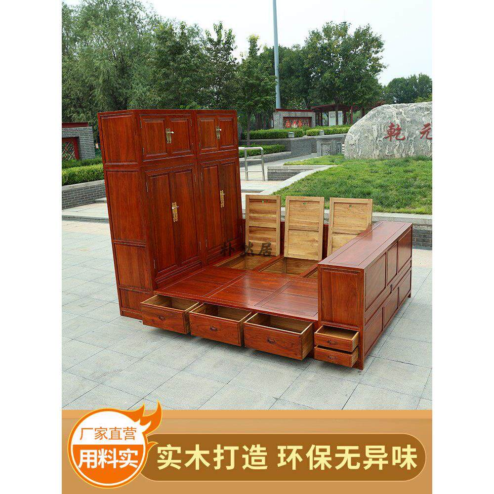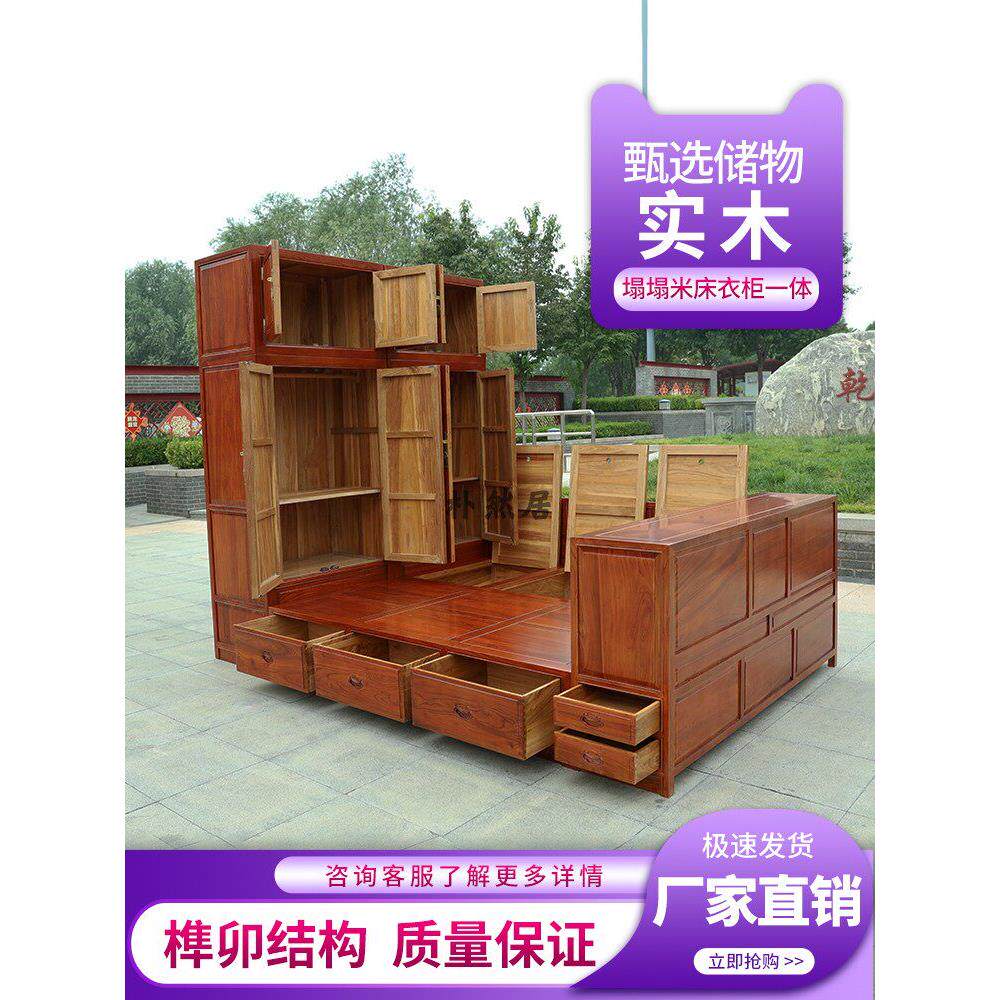中国实木榻榻米床衣柜集成储物床整体全屋定制小公寓卧室暖亭