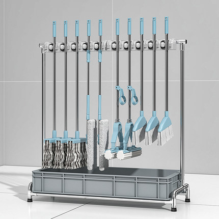 带轮移动拖把架放扫把置物架不锈钢商用落地收纳清洁卫生工具架子