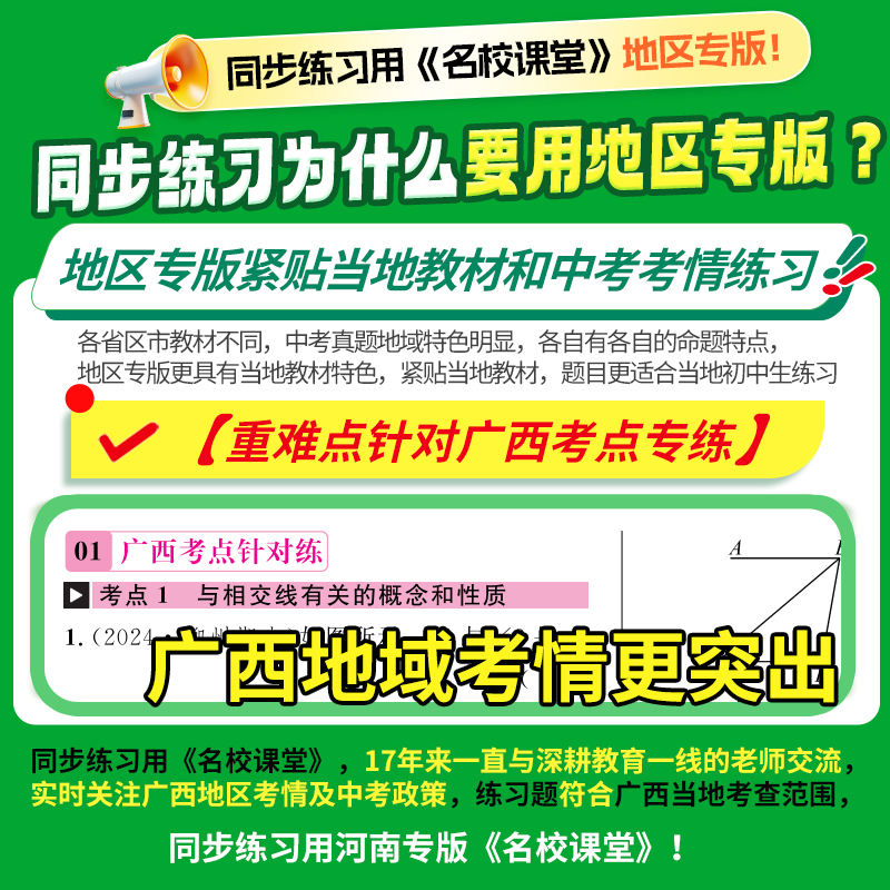 【广西专版】2025秋新版名校课堂初中七年级八 九年级上册语文数学英语物理化学历史地理人教版初一初二初三同步练习册专项训练书