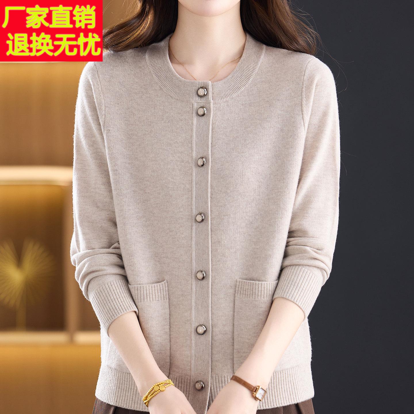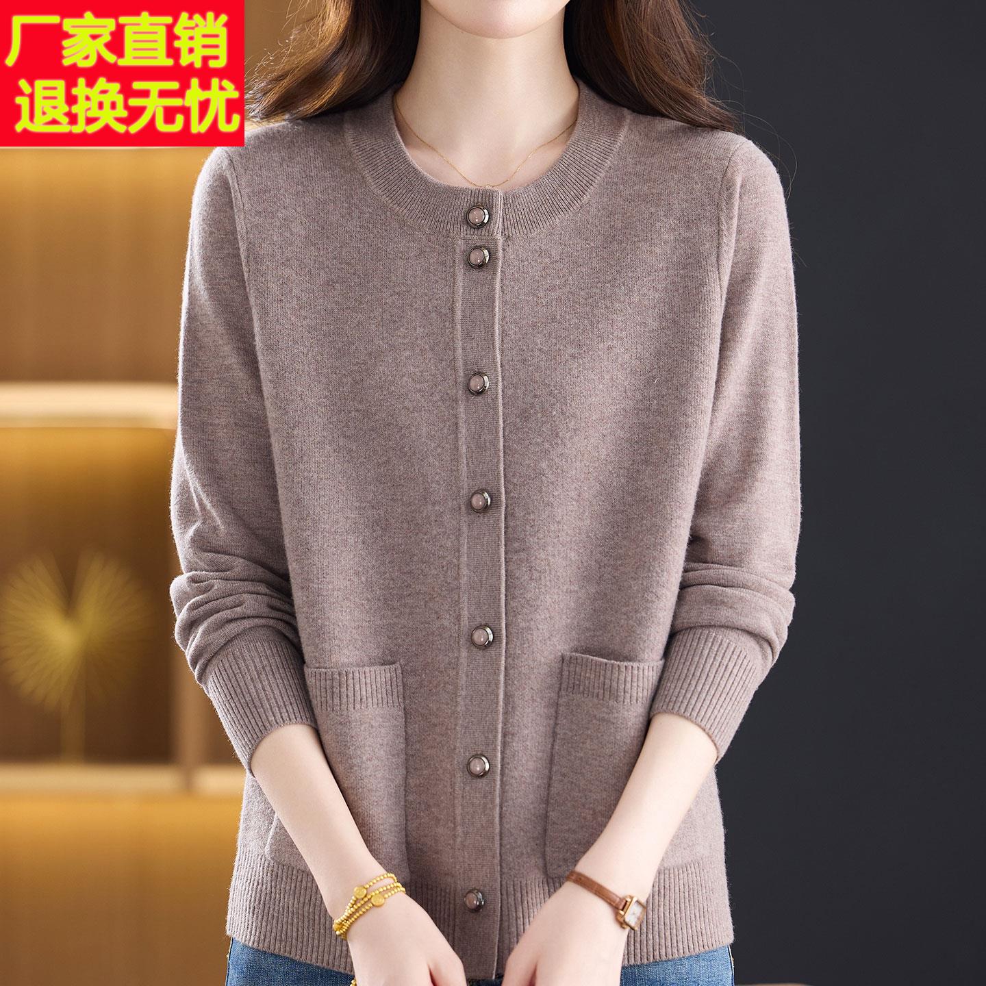 嘉兴濮院市秋冬新款妈妈100%纯羊毛衫圆领毛衣中老年人针织开衫