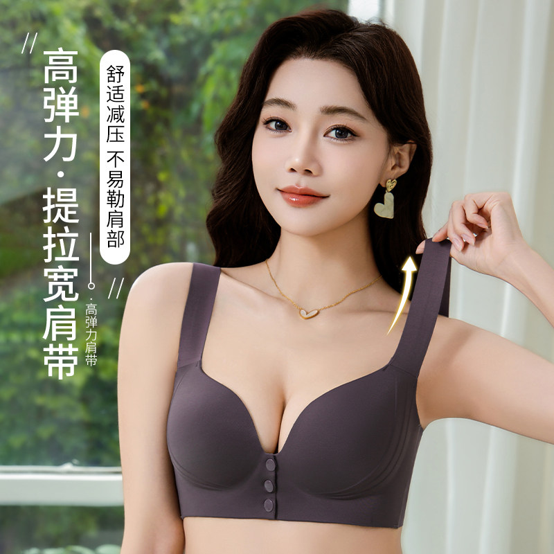 前扣无痕内衣女大胸显小防下垂收副乳薄款聚拢怀孕妇哺乳大码文胸