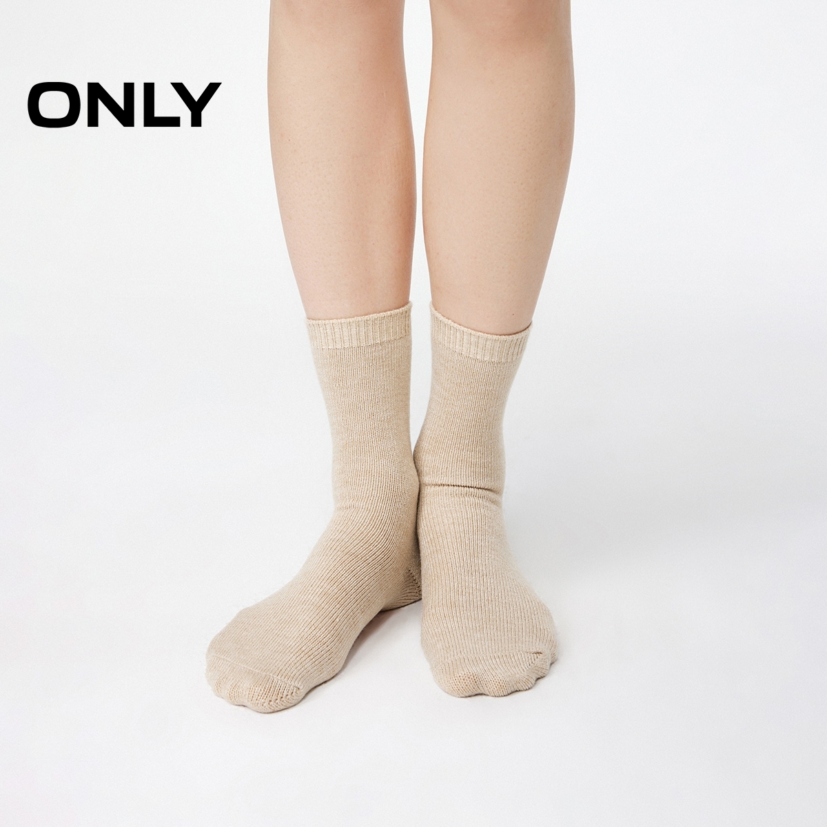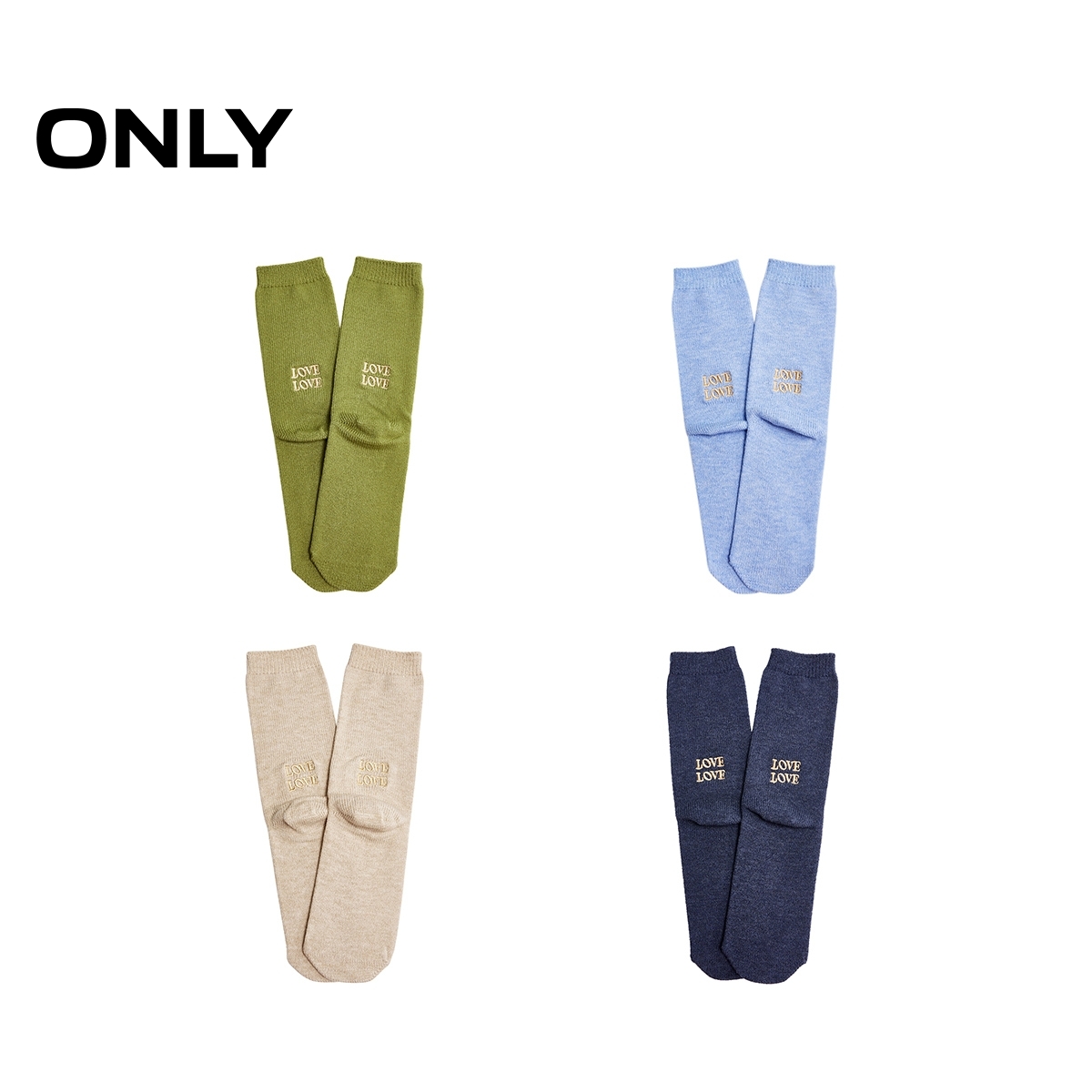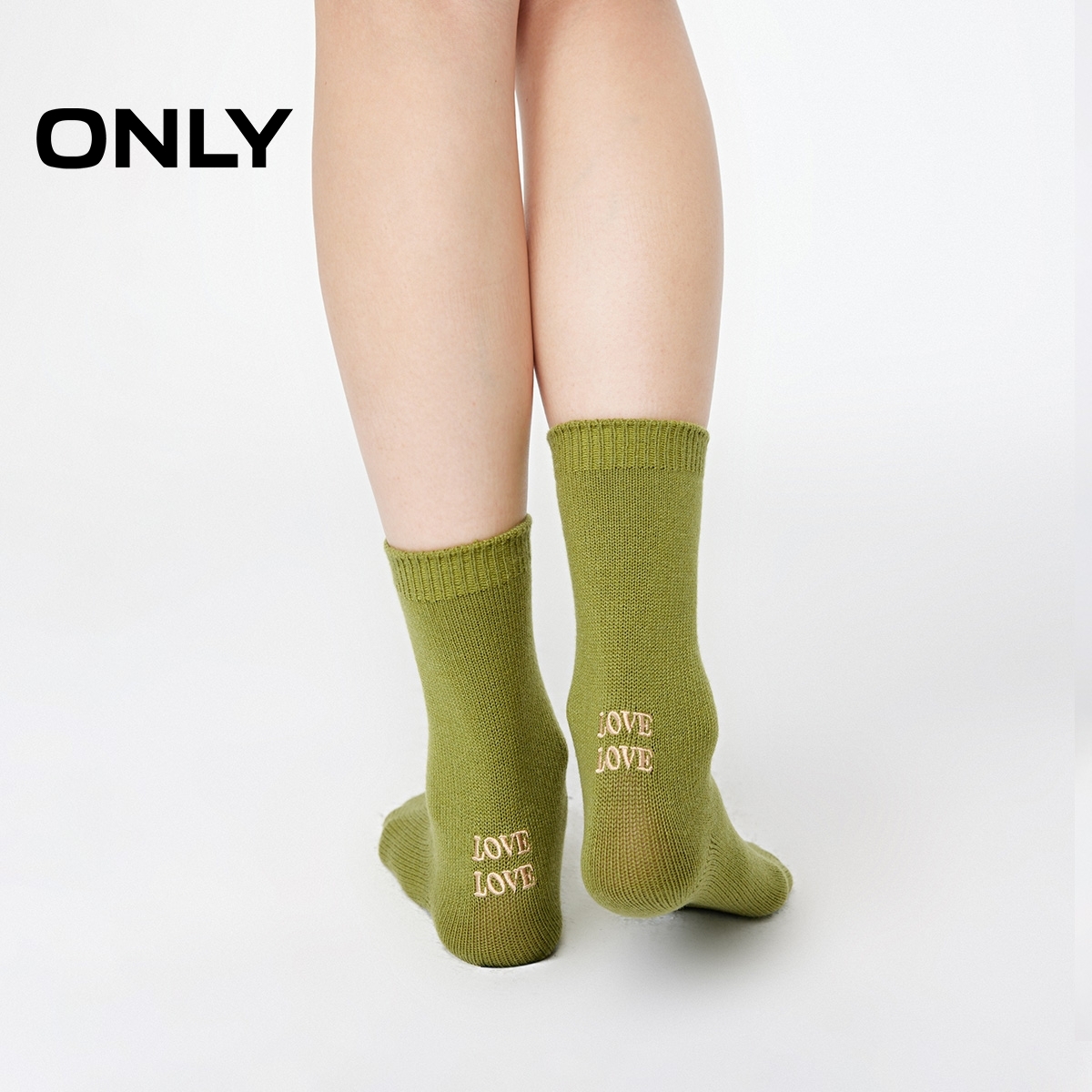 ONLY2025秋季新款绵软舒适针织面料撞色字母刺绣设计中筒袜子女